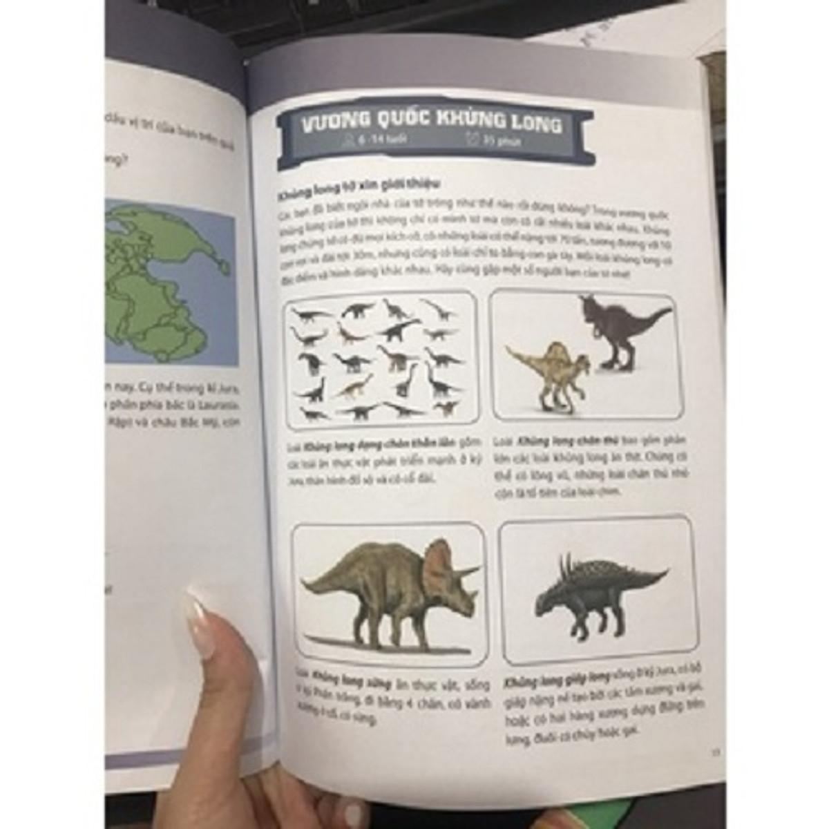 Qua cuốn Câu chuyện khủng long (6-14 tuổi), các bạn nhỏ sẽ thử sức trong vai các nhà khoa học, khảo cổ khám phá thế giới khủng long cổ đại đầy bí ẩn. Các em sẽ tìm lời giải đáp cho thắc mắc “Khủng long đến từ đâu? Khủng long đẻ con hay đẻ trứng? Vì sao khủng long biến mất?”, vì sao núi lửa phun trào, hay tại sao xảy ra động đất? Chỉ bằng những vật liệu đơn giản, dễ kiếm là bạn đã có thể thiết kế nên những công trình thú vị. Hãy không ngừng sáng tạo để có thể sáng chế những sản phẩm khoa học, kỹ thuật, công nghệ hiện đại hơn nữa nhé!