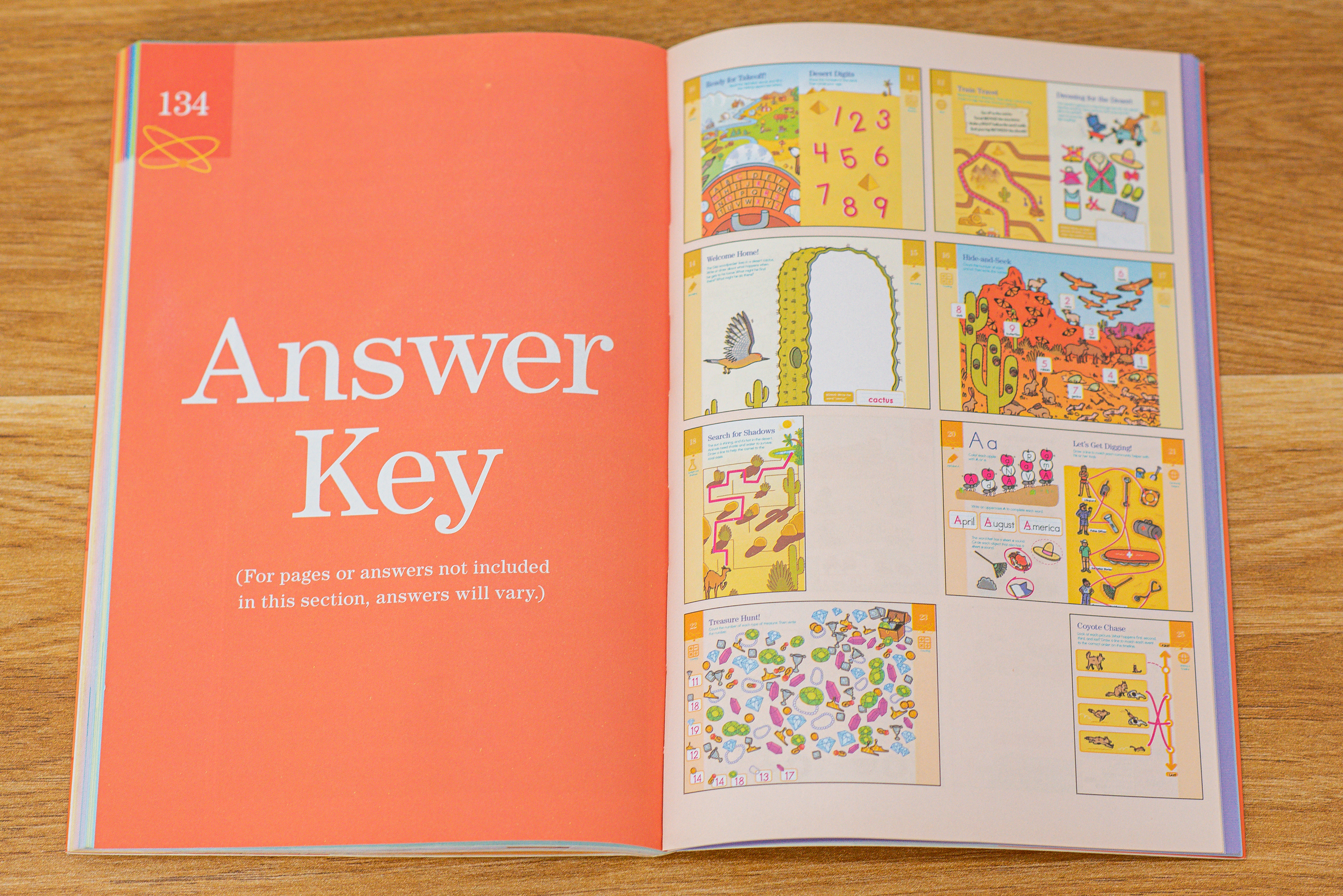 • GRADE K&1: bài tập dựa trên ngữ âm, đọc, viết, đếm, hình dạng, kỹ năng bản đồ, môi trường sống, mùa, và nhiều hơn nữa, với các minh họa vui nhộn xuyên suốt