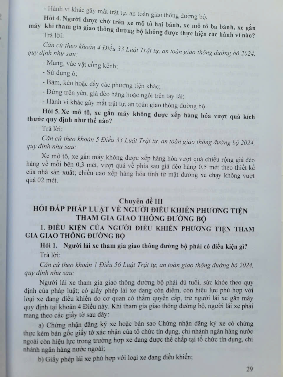 Phần thứ nhất. HỎI ĐÁP PHÁP LUẬT VỀ TRẬT TỰ, AN TOÀN GIAO THÔNG ĐƯỜNG BỘ
