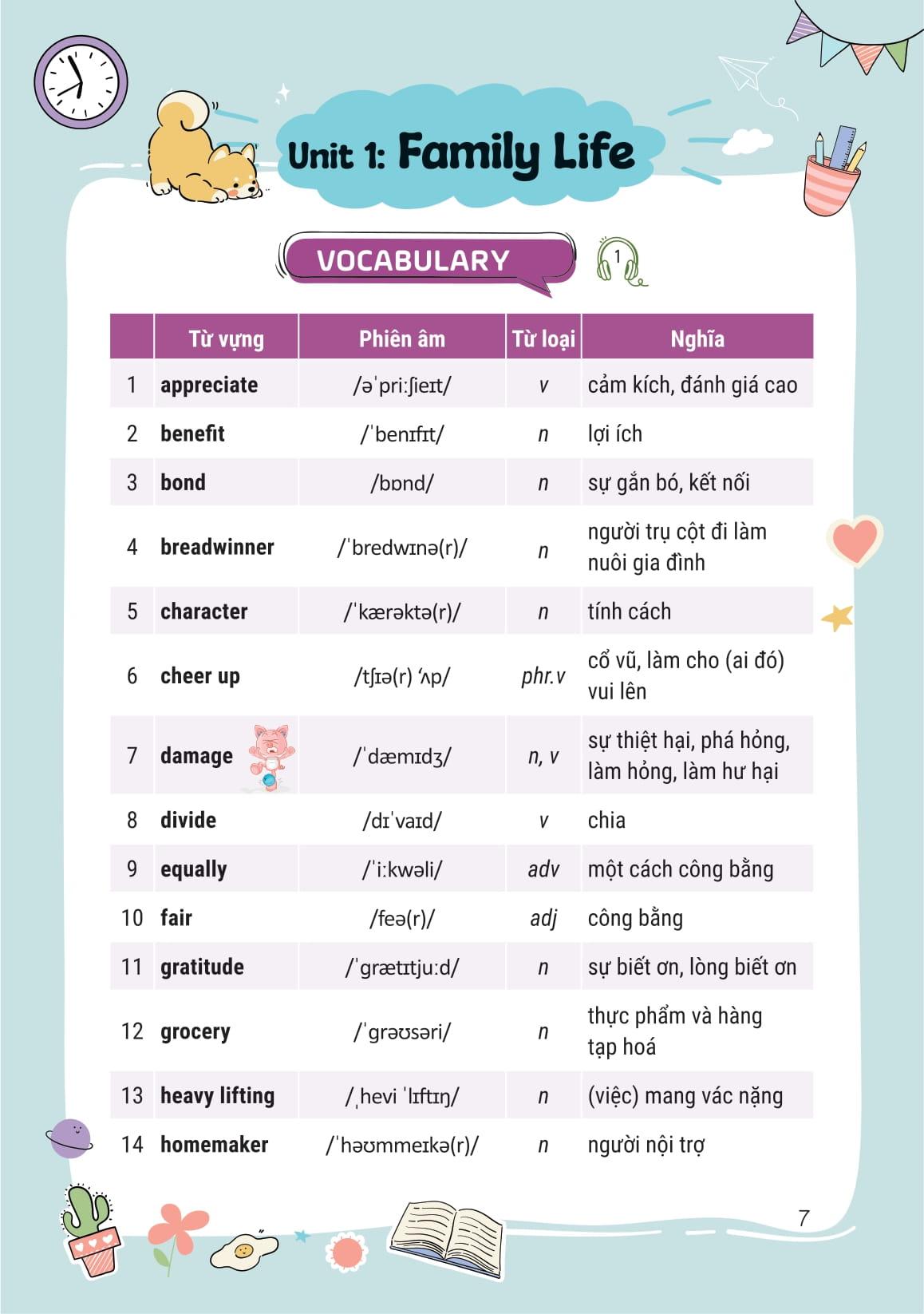 Useful Phrases – Cung cấp các cụm từ, mẫu câu thường gặp trong giao tiếp và bài thi, giúp học sinh ứng dụng linh hoạt trong thực tế.