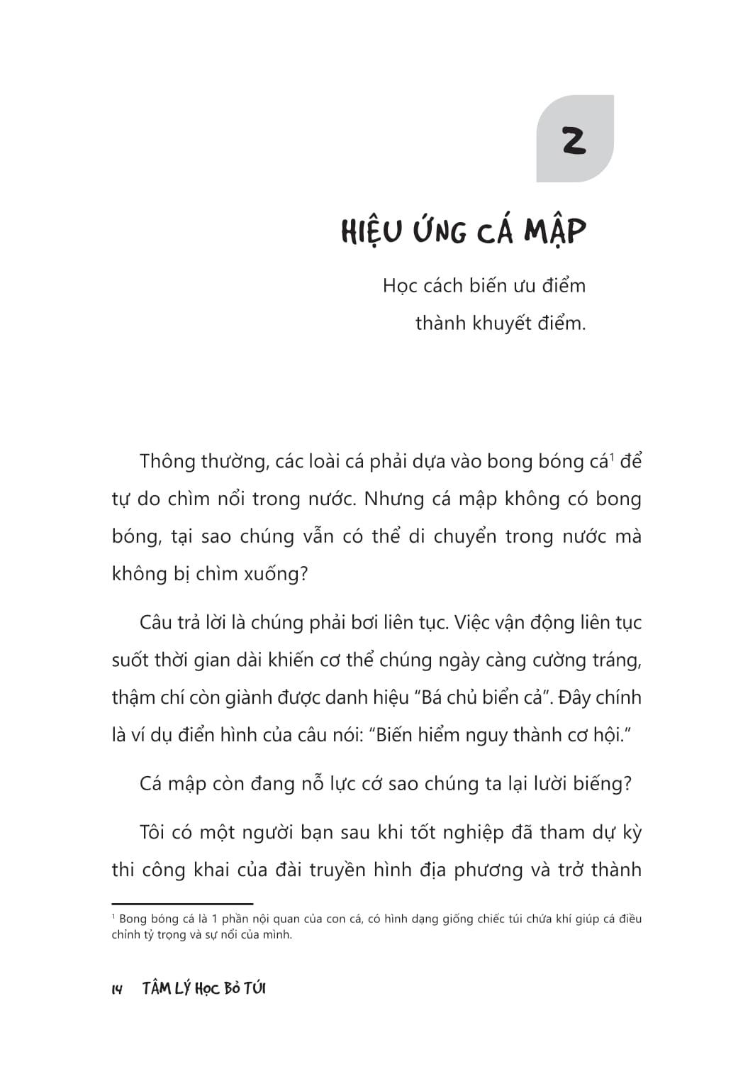 Tâm lý học bỏ túi – cuốn từ điển giải đáp 100 hiện tượng thông dụng mà ai cũng từng trải qua như: xu hướng tiêu cực về bản thân khi bị chê trách, né tránh khi nghĩ đến ngày thứ Hai đầu tuần, tiếc nuối hối hận trước những thứ không có được hoặc bỏ lỡ,...