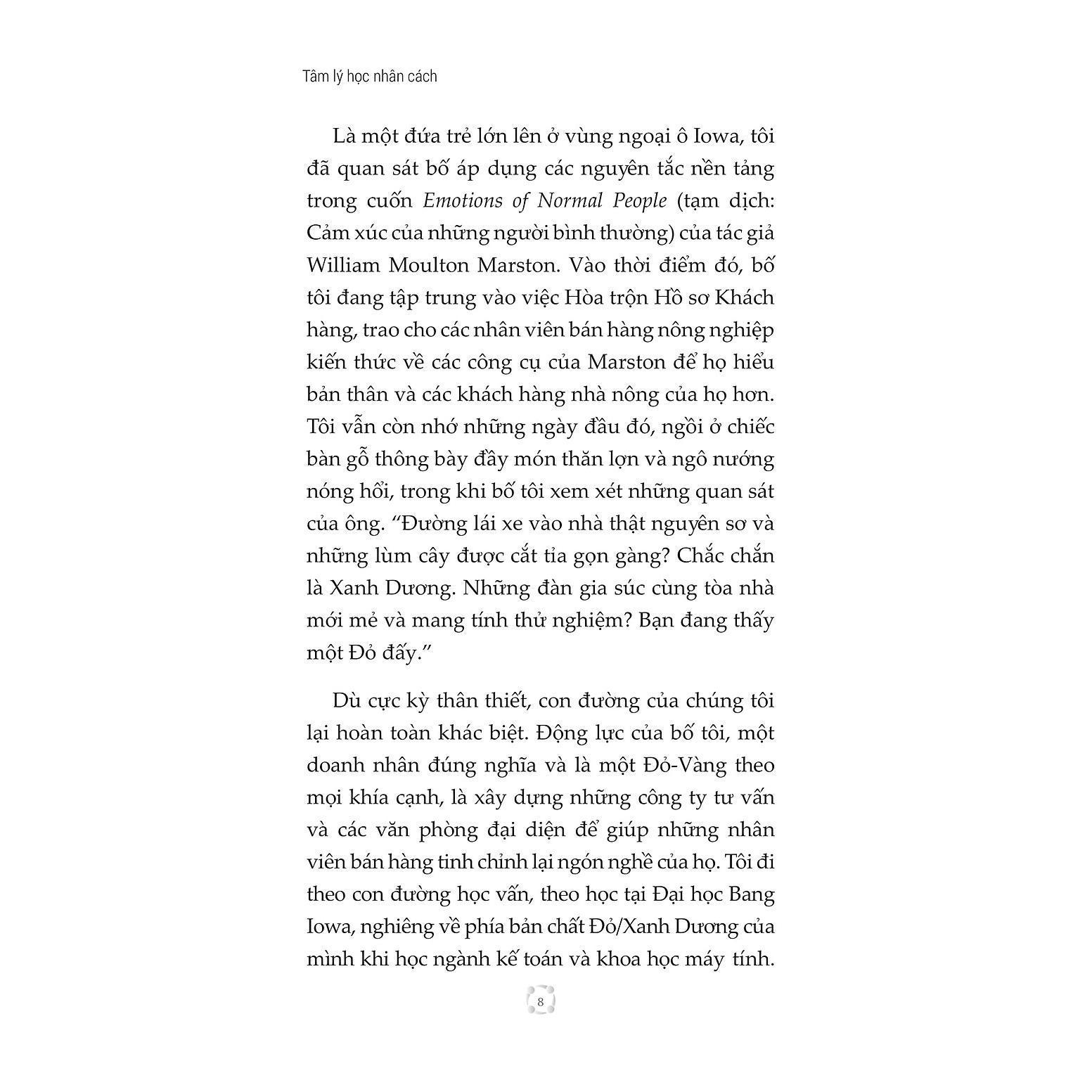 Trong cuốn sách này, tác giả đã cung cấp chiến lược giao tiếp đơn giản nhưng đột phá nơi văn phòng, dựa trên cơ sở chia con người thành bốn loại tính cách - bốn “màu sắc” Đỏ, Vàng, Xanh Lá, Xanh Dương - đồng thời cung cấp những phương pháp cụ thể để giao tiếp và ứng xử với từng loại. Erikson sẽ giúp bạn thấu hiểu bản thân, trau dồi kỹ năng giao tiếp xã hội, tự tin giải quyết xung đột và hòa đồng hơn với các đồng nghiệp. Ông cũng chia sẻ những thủ thuật về ngôn ngữ cơ thể và cách phòng tránh xung đột.