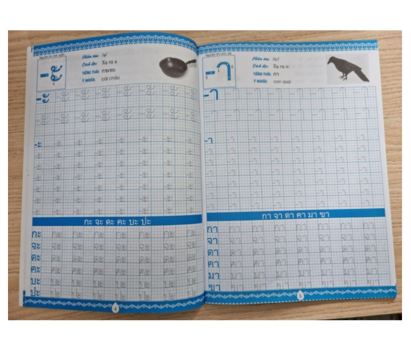 Khi học tiếng Thái hay bất kì ngoại ngữ nào, bên cạnh việc luyện nghe, phát âm, đọc, nói thì viết cũng là một kĩ năng quan trọng mà bạn cần luyện tập. Bởi nó không chỉ giúp bạn ghi nhớ các chữ cái mà còn cho bạn sự tự tin để trình bày các văn bản tiếng Thái một cách thành thạo. Cuốn sách này hướng dẫn bạn luyện viết các chữ cái tiếng Thái, phần Nguyên âm. Mỗi nguyên âm được trình bày cụ thể các nguyên tắc viết cũng như thứ tự viết từng nguyên âm để người học dễ theo dõi và tập viết các nét đúng, đều và đẹp. Tiếng Thái có 32 nguyên âm tạo thành 9 giọng nguyên âm ngắn, 9 giọng nguyên âm dài, 3 hợp âm. Các nguyên âm kép là những nguyên âm có 2 ký tự trở lên, những nguyên âm này có thể ở hai bên của phụ âm. Trong tiếng Thái có 6 nguyên âm ít thường dùng trong tiếng Thái hiện nay.
