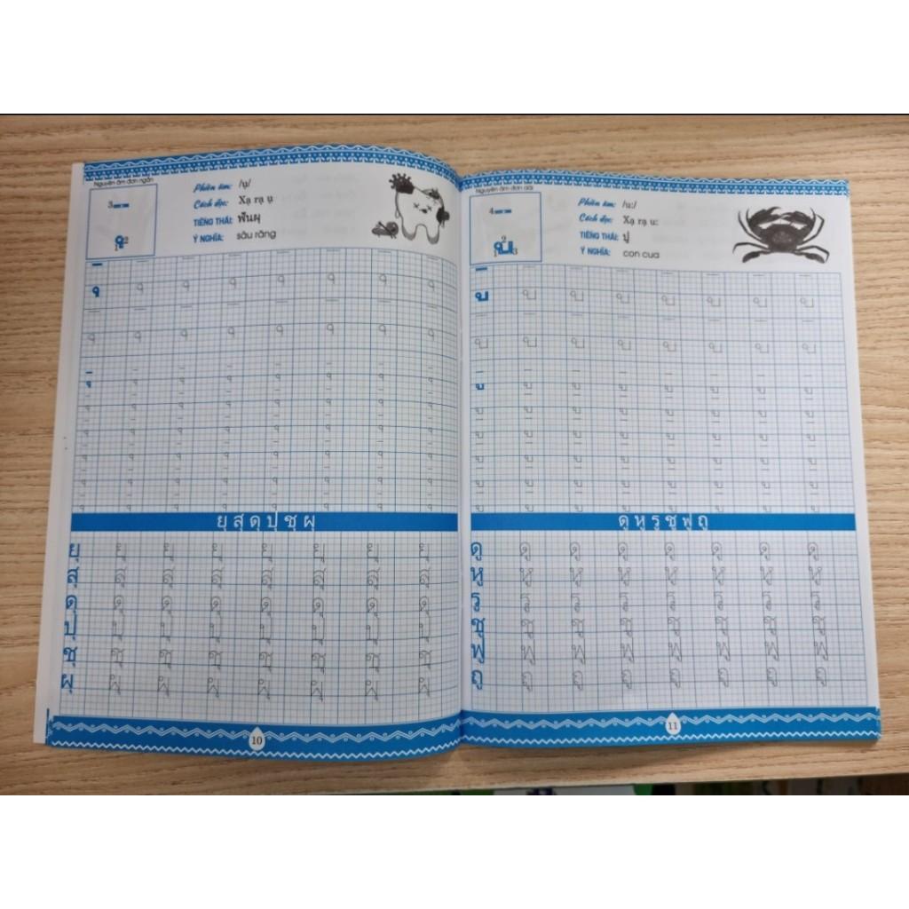 Khi học tiếng Thái hay bất kì ngoại ngữ nào, bên cạnh việc luyện nghe, phát âm, đọc, nói thì viết cũng là một kĩ năng quan trọng mà bạn cần luyện tập. Bởi nó không chỉ giúp bạn ghi nhớ các chữ cái mà còn cho bạn sự tự tin để trình bày các văn bản tiếng Thái một cách thành thạo. Cuốn sách này hướng dẫn bạn luyện viết các chữ cái tiếng Thái, phần Nguyên âm. Mỗi nguyên âm được trình bày cụ thể các nguyên tắc viết cũng như thứ tự viết từng nguyên âm để người học dễ theo dõi và tập viết các nét đúng, đều và đẹp. Tiếng Thái có 32 nguyên âm tạo thành 9 giọng nguyên âm ngắn, 9 giọng nguyên âm dài, 3 hợp âm. Các nguyên âm kép là những nguyên âm có 2 ký tự trở lên, những nguyên âm này có thể ở hai bên của phụ âm. Trong tiếng Thái có 6 nguyên âm ít thường dùng trong tiếng Thái hiện nay.