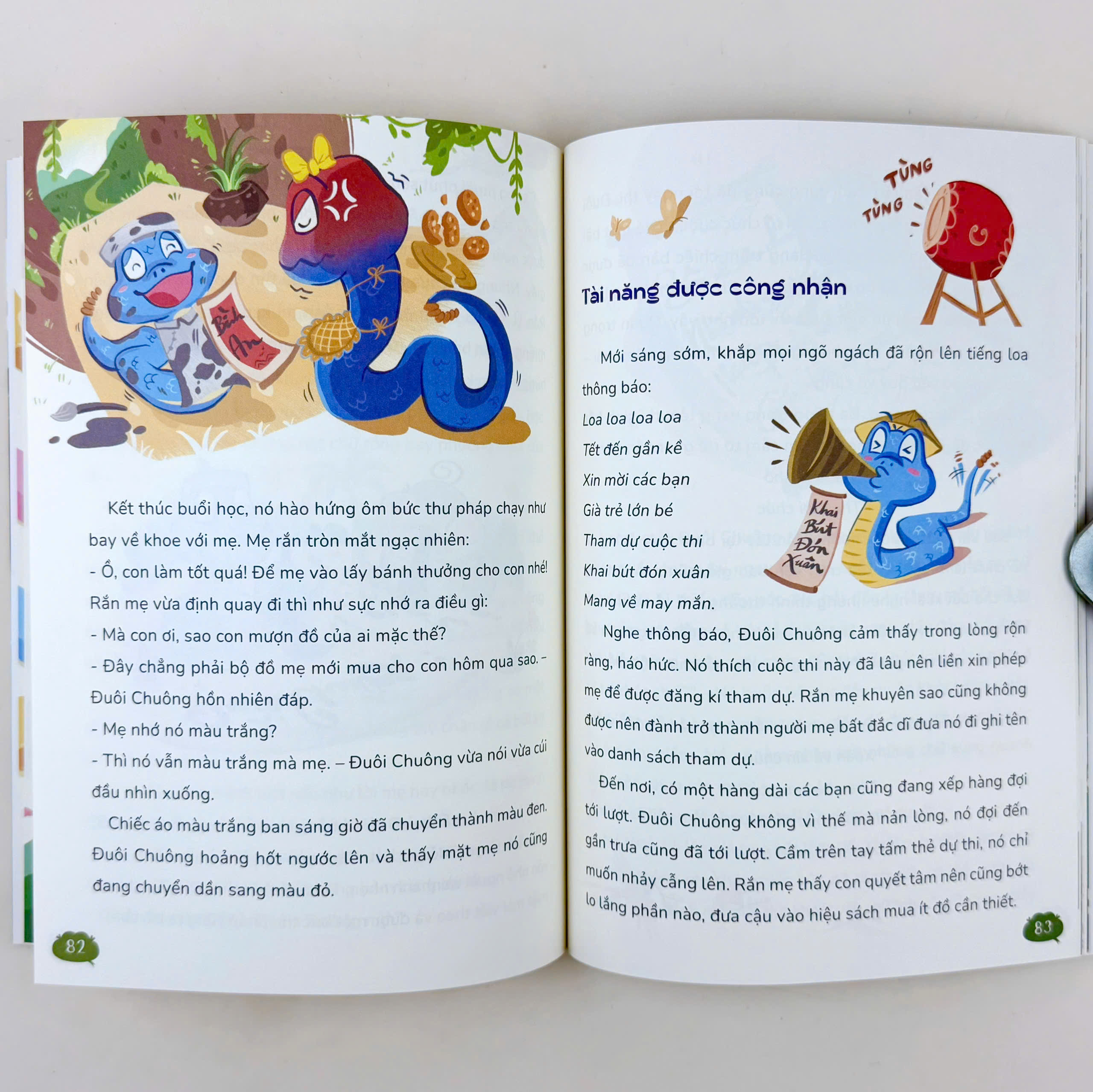 Một năm nữa trôi qua và chúng ta lại được gặp nhau trong cuốn sách Tết năm nay, năm con rắn. Trước khi xây dựng ý tưởng cho cuốn sách này, các cô Cánh Cam nghĩ phải làm sao để nhân vật con rắn không còn đáng sợ. Các cô đã thử phác thảo hình ảnh, bắt đầu viết đề cương và rồi cảm thấy đối với người lớn những thứ tưởng chừng đáng sợ thì dưới lăng kính trẻ thơ, nó có thể trở nên dịu dàng và đáng yêu vô cùng. Ý tưởng về những chuyến phiêu lưu bắt đầu từ góc nhìn dịu dàng như vậy đấy!