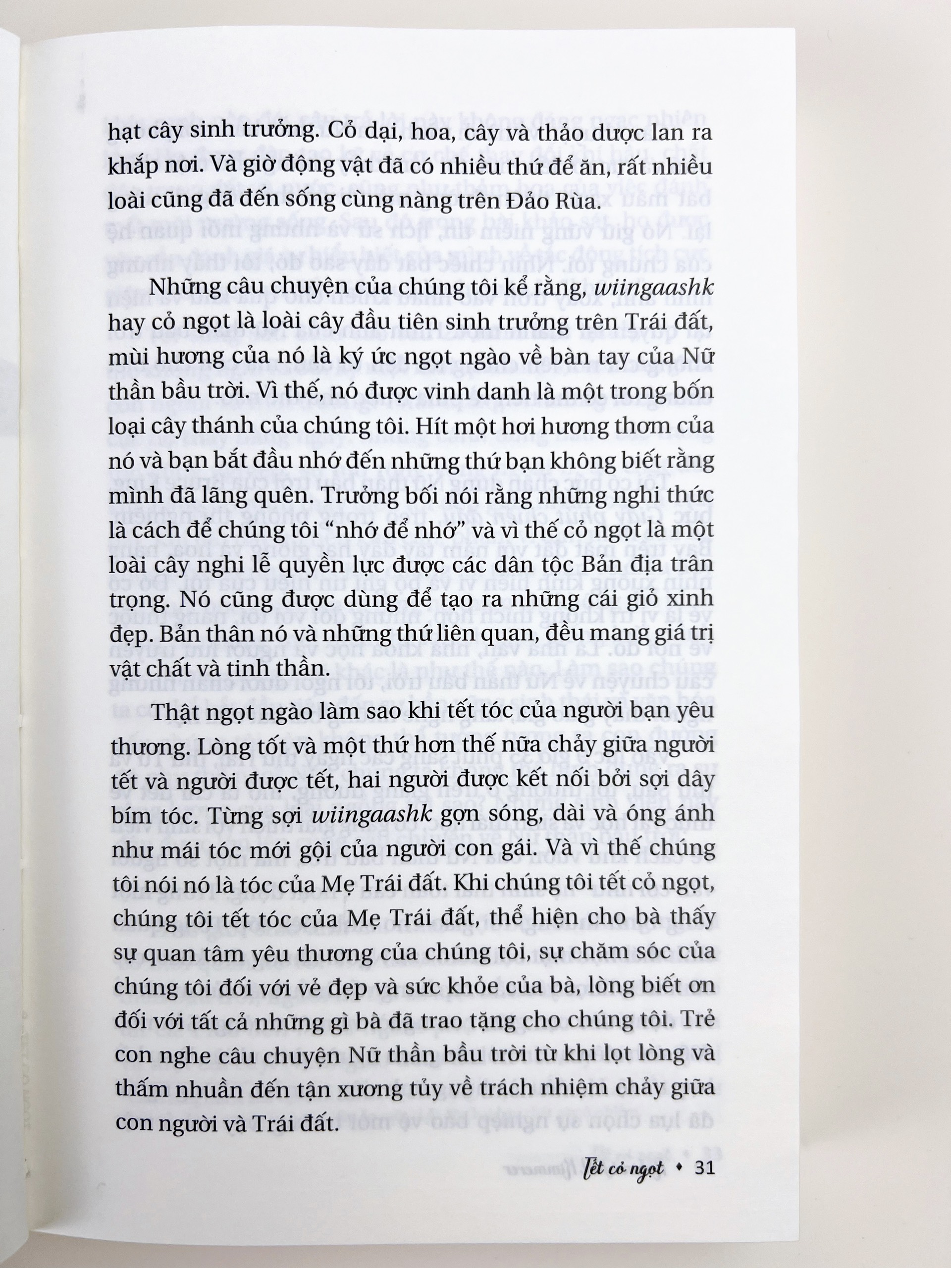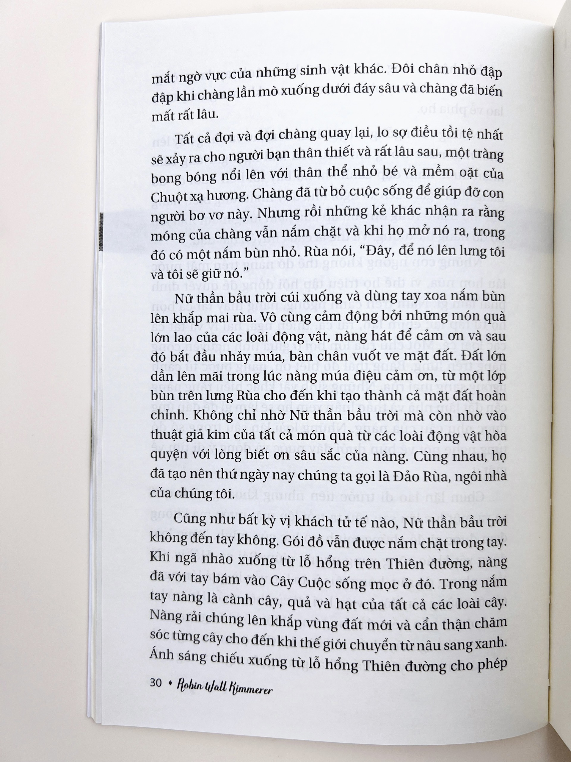 Là một nhà khoa học, một hậu duệ của thổ dân da đỏ Bắc Mỹ, tác giả Kimmerer đã kể lại những câu chuyện cho thấy Cây cối, Đất đai và Thực vật đã mang đến cho chúng ta những món quà và bài học quý giá như thế nào, ngay cả khi loài người đã quên cách lắng nghe thông điệp của họ.