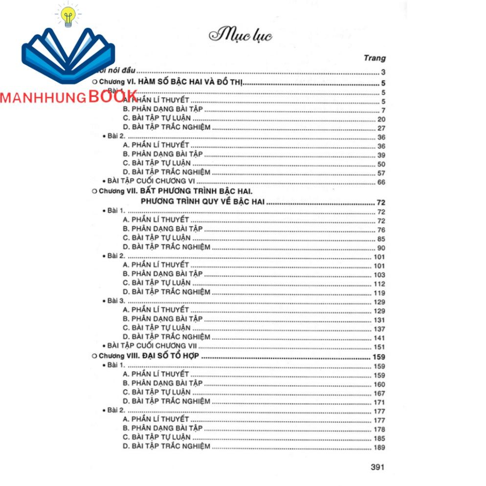 - Tóm tắt lí thuyết (Trong phần này vẫn có ví dụ để học sinh hiểu lí thuyết); phân dạng bài tập (Phần này sẽ hướng dẫn học sinh cách làm toán theo các dạng bài tự luận, được chia dạng một cách có hệ thống)