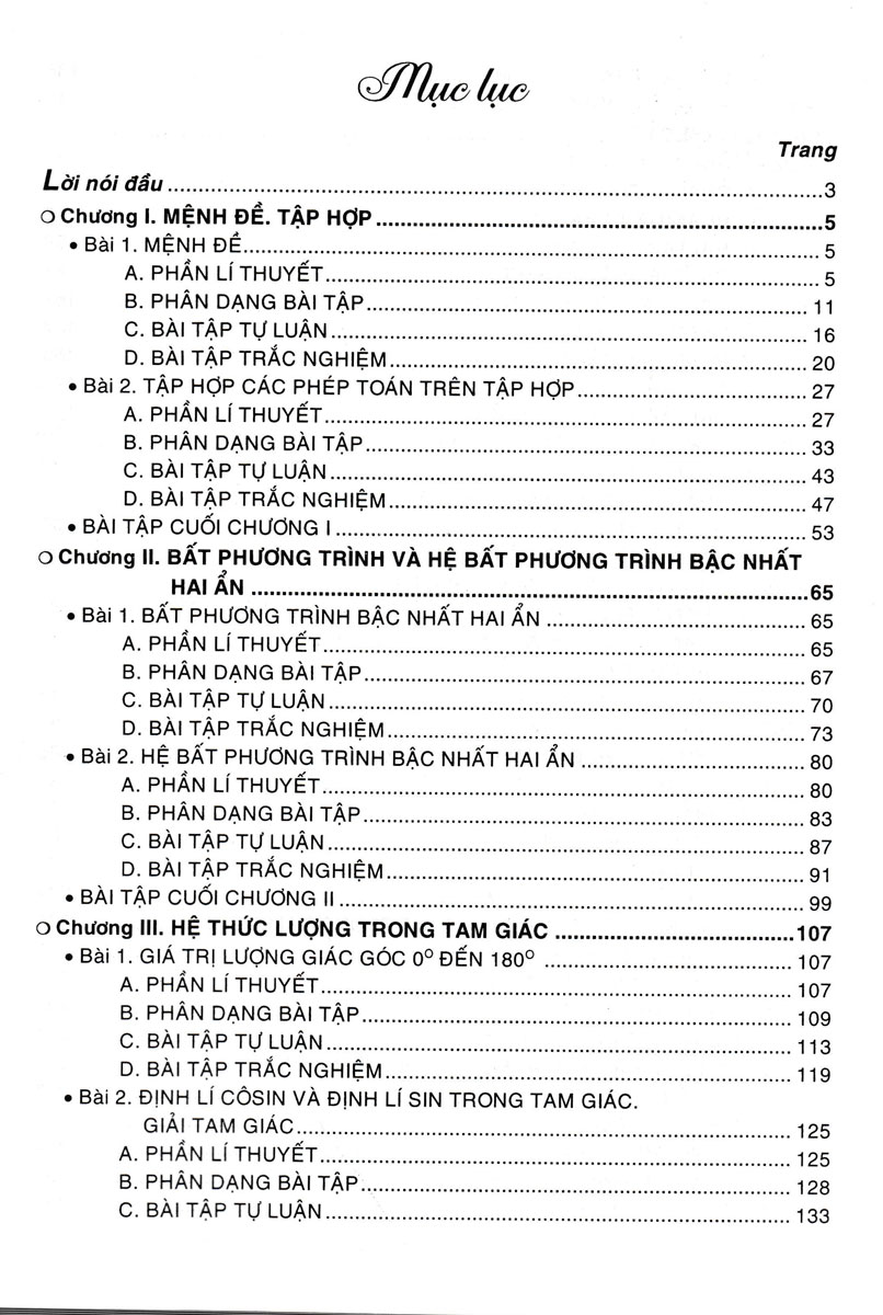 1. Nội dung sách Tự học Toán học lớp 10: Tập 1: - Chương 1: Mệnh đề và tập hợp (5 chủ đề) - Chương 2: Bất phương trình - Hệ bất phương trình (4