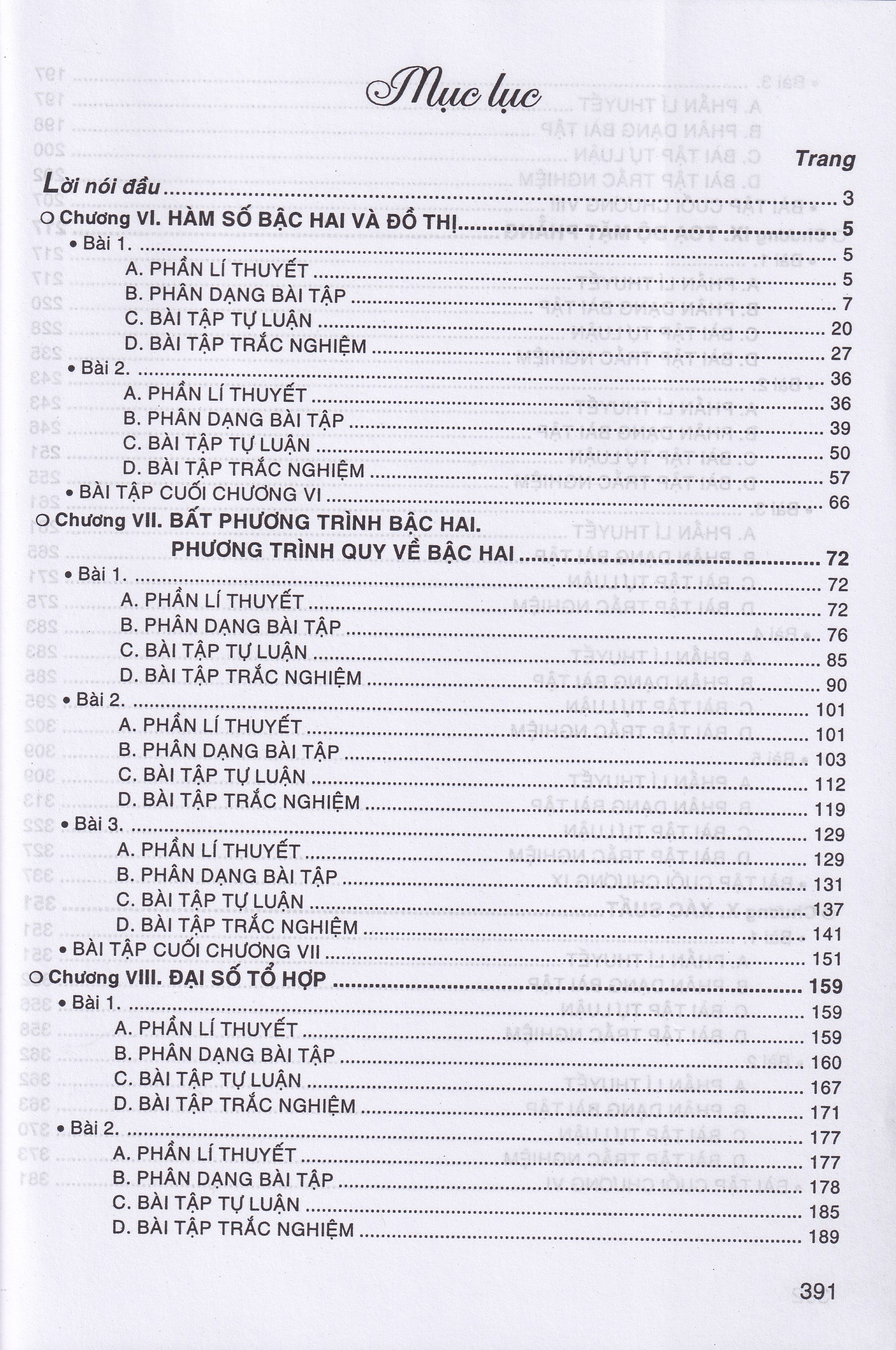 Tập 2 gồm các chương: Chương VI: Hàm số, đồ thị và ứng dụng Chương VII: Phương pháp tọa độ trong mặt phẳng Chương VIII: Đại số tổ hợp Chương IX: Tính xác suất theo