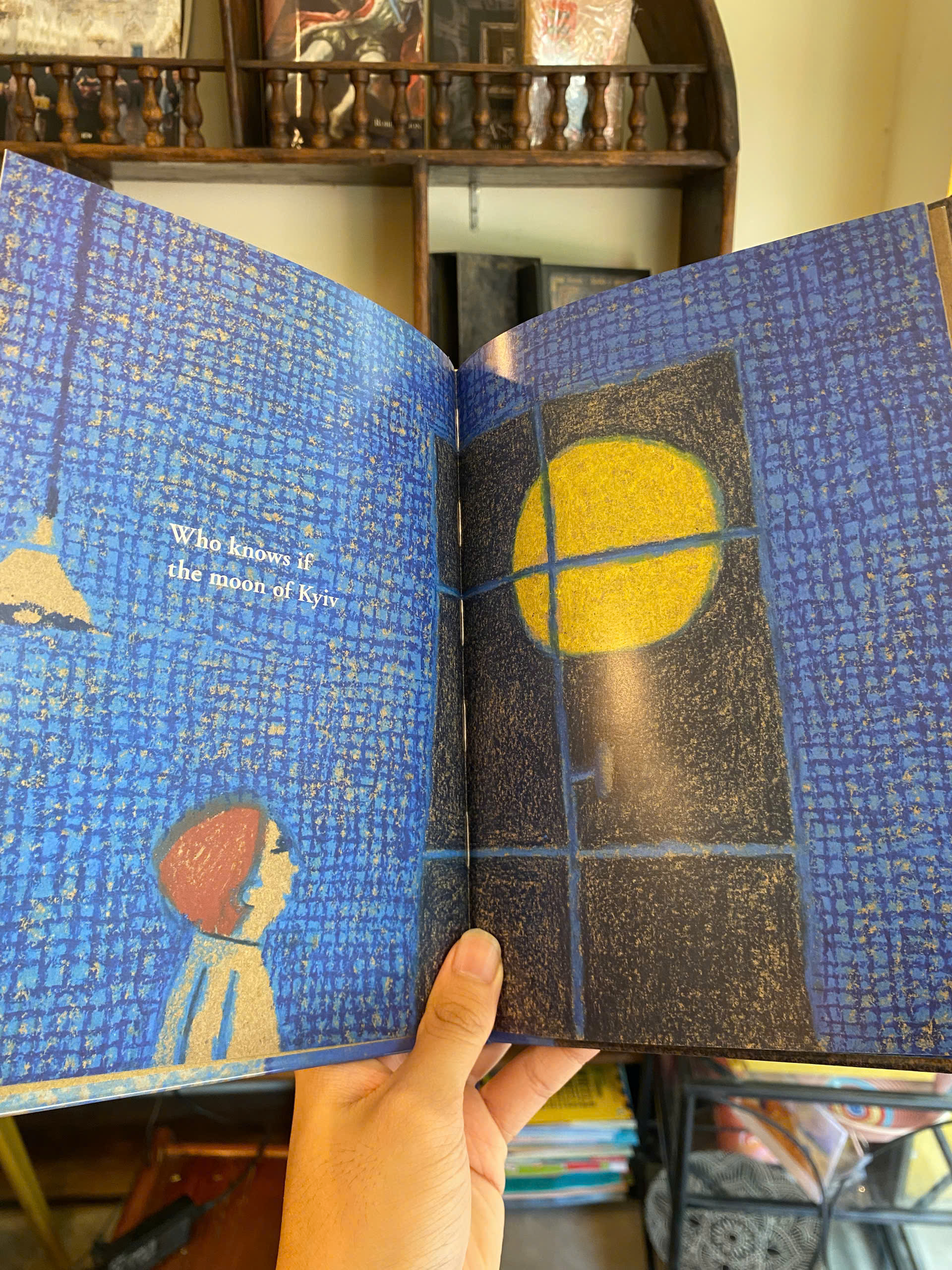 Năm 1955, nhà thơ người Ý được yêu mến Gianni Rodari đã sáng tác một bài đồng dao mang tên "Mặt Trăng Kyiv". Đó là một bài thơ về tình người chung của chúng ta - bài thơ nhắc nhở chúng ta rằng, dù chúng ta đến từ đâu hay sống ở đâu, tất cả chúng ta đều tồn tại dưới cùng một vầng trăng. Trong những ngày sau khi chiến tranh bùng nổ ở Ukraine, những lời ca này đã lan truyền khắp nước Ý: chúng trở thành lời kêu gọi hòa bình. Sáu thập kỷ sau, chúng lại vang vọng và trở nên gần gũi hơn bao giờ hết. Giờ đây, lần đầu tiên, bài thơ được minh họa bởi Beatrice Alemagna, người có những bức tranh tuyệt đẹp, hòa quyện với lời thơ của Rodari về hy vọng, sự thuần khiết và sức mạnh.