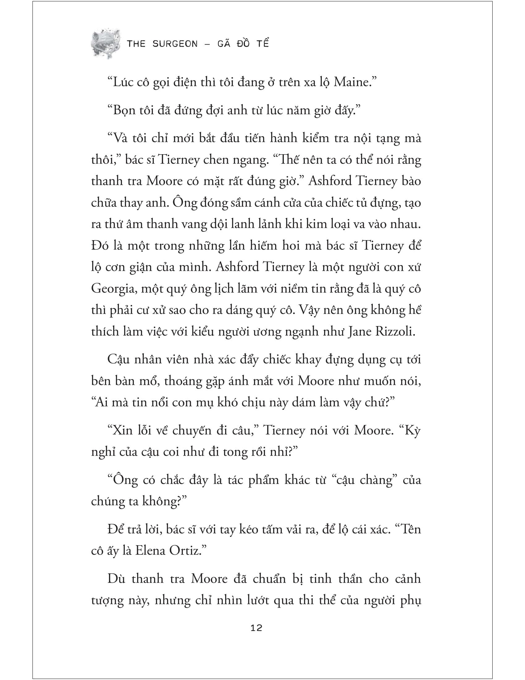 TESS GERRITSEN Là một bác sĩ chuyên nghiệp, Tess Gerritsen vốn mang trong m.ình tình yêu với những con chữ. Trong quá trình nghỉ thai sản, Tess đã viết truyện ngắn đầu tay của m.ình và giành giải nhất của một cuộc thi viết trên tạp chí Honolulu. Từ đó, bà quyết định theo đuổi đam mê viết lách.