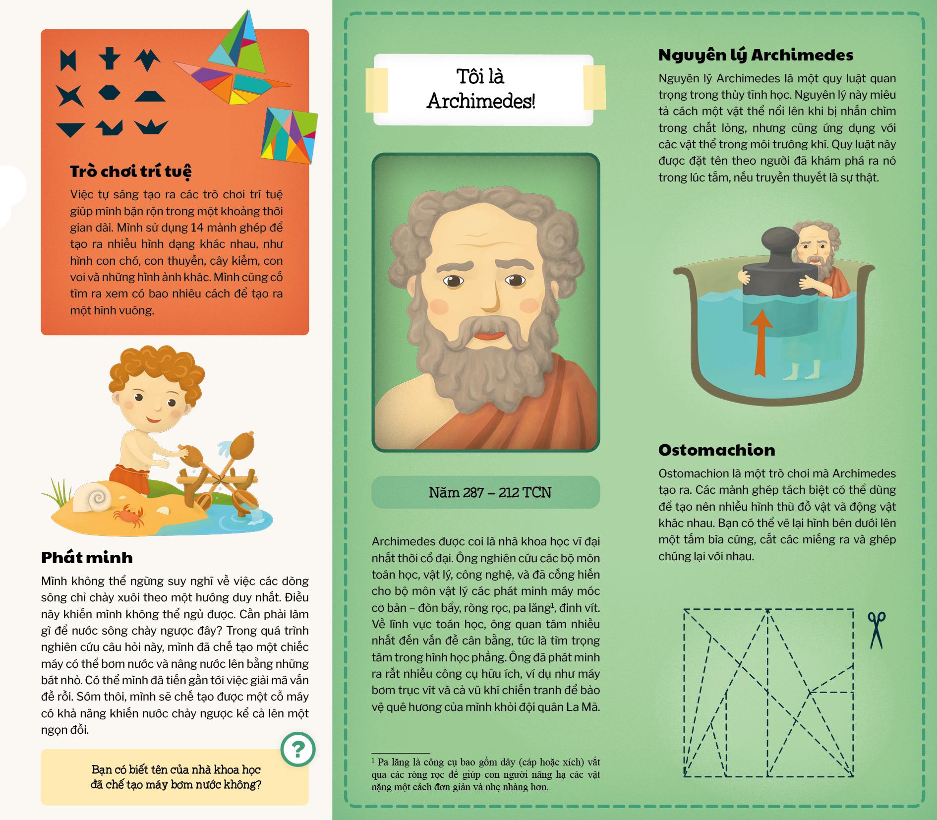 Thời Thơ Ấu Của Những Người Nổi Tiếng Thời thơ ấu của những người nổi tiếng được xem là một cuốn sách, một trò chơi giải trí vô cùng thú vị và lôi cuốn. Đắm chìm trong từng trang sách, bạn đọc sẽ được gặp gỡ với 25 người nổi tiếng – nhưng họ đều ở trong phiên bản thời thơ ấu của m.ình. Trong số 25 người nổi tiếng này có thể họ là một nhà cai trị quyền lực, một nhà phát minh lỗi lạc, một nhà khoa học uyên bác, một nhạc sĩ tài hoa, hay một tiểu thuyết gia được người người yêu mến… Tất cả những nhân vật này sẽ dẫn bạn quay trở về thời thơ ấu của chính họ và bật mí cho bạn biết cuộc sống ngày bé của họ ra sao, họ thích chơi trò gì và quan tâm đến điều gì nhất – và hẳn nhiên họ sẽ giữ bí mật về tên tuổi của m.ình đến phút cuối. Mỗi người nổi tiếng đó sẽ đưa ra những gợi ý hữu ích giúp bạn đọc có thể đoán xem họ là ai. Nhiệm vụ của mỗi độc giả chính là thông qua các gợi ý đó để đoán ra được tên người nổi tiếng mà bạn đang đọc. Điều thú vị nhất của cuốn sách này chính là có những trang tay gấp, nơi tiết lộ danh tính hay cũng chính là đáp án để xem liệu bạn đã đoán đúng tên nhân vật m.ình vừa đọc hay không. Trong trang tay gấp đó, tác giả còn cung cấp thêm nhiều thông tin bổ ích, chẳng hạn như các thành tựu mà người nổi tiếng đó đạt được, giúp bạn đọc được mở rộng vốn hiểu biết và thêm phần ngưỡng mộ, biết ơn những công sức cũng như trí tuệ của họ. Với nội dung thiết thực, hữu ích và hình ảnh minh họa đáng yêu, cuốn sách này đã được dịch ra 13 ngôn ngữ, và được đánh giá cao về lượng kiến thức phù hợp cho mọi lứa tuổi, đặc biệt với lứa tuổi từ 6 đến 8. chúng tôi hi vọng rằng với những trang sách màu sắc, thiết kế độc đáo giúp vừa đọc sách trau dồi kiến thức vừa giải trí thư giãn, cuốn sách Thời thơ ấu của những người nổi tiếng sẽ mang lại những giây phút ý nghĩa dành cho mọi người.
