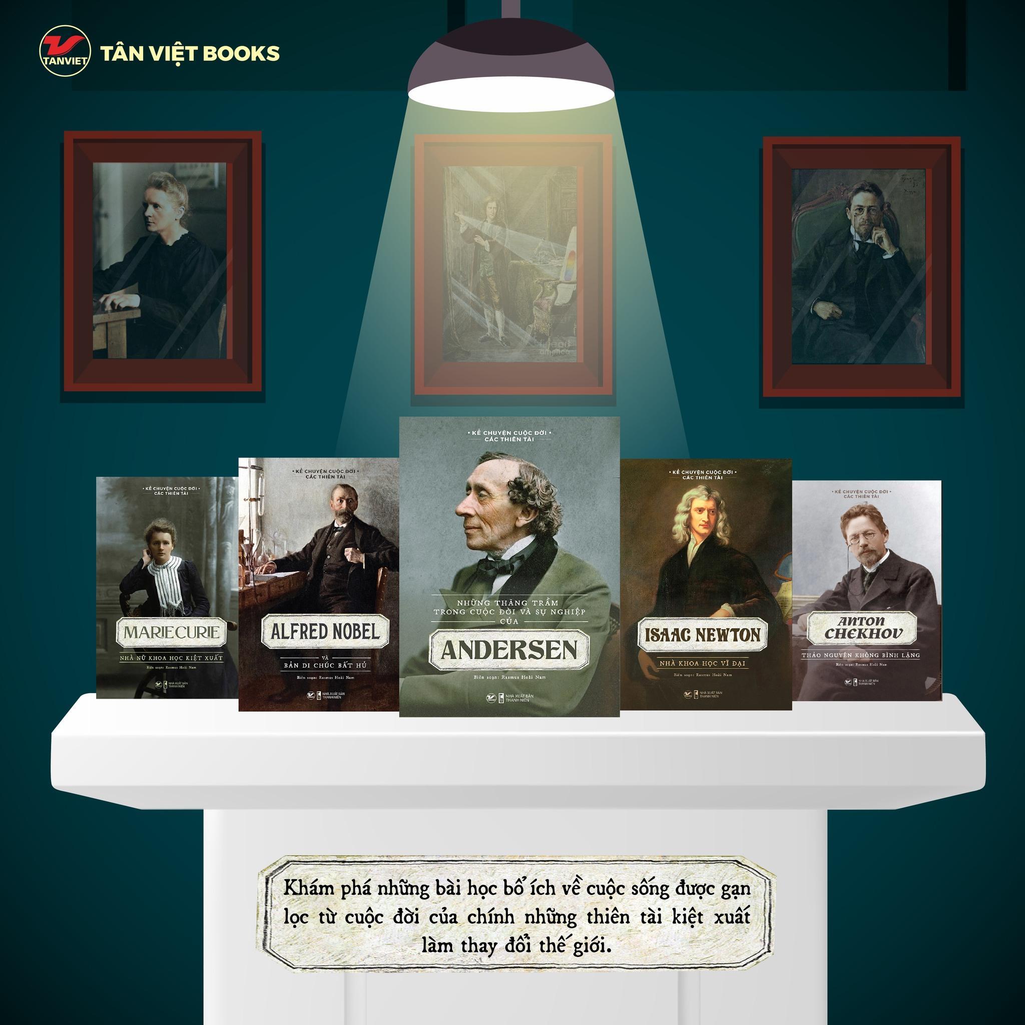 Bộ sách Kể chuyện cuộc đời các thiên tài gồm 15 cuốn, trong đó mỗi cuốn sách là một câu chuyện khắc họa sinh động cuộc đời, quá trình sáng tạo cùng những đóng góp to lớn của những con người vĩ đại làm thay đổi cả thế giới. Đó là Alfred Nobel, nhà khoa học có tấm lòng cao cả khi dành phần lớn tài sản của mình sáng lập ra giải thưởng Nobel danh giá. Là thiên tài toàn năng Leonardo Da Vinci, con người cùng lúc đam mê cả nghệ thuật và khoa học với năng lượng sáng tạo khôn cùng. Là nhà văn Andersen với những câu chuyện cổ tích đi vào tiềm thức của bao thế hệ tuổi thơ. Là nhà vật lý Issac Newton, Albert Einstein với sự lao động không biết mệt mỏi đã mang đến những phát minh làm thay đổi đời sống, những quan niệm của toàn nhân loại…