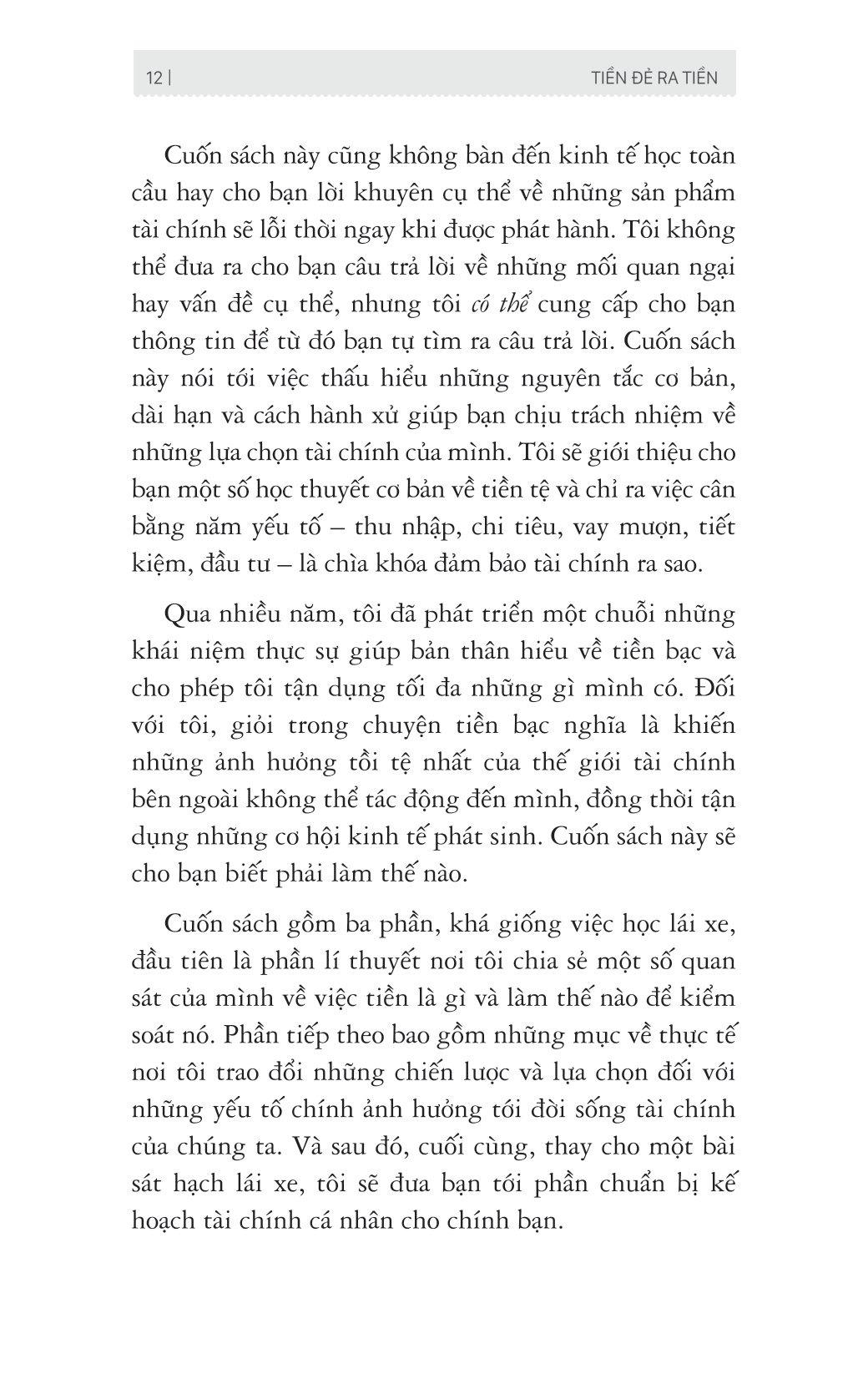 Thuộc dòng sách quản lý tài chính của Bizbooks, Bạn sẽ không phải đọc cuốn sách theo trình tự của nó. Ví dụ, nếu bạn muốn bắt đầu với phần tiết kiệm thì cứ đọc nó trước. Thậm chí có thể có một số lí thuyết trong Phần Một sẽ ngấm sâu hơn một chút khi bạn đọc những ví dụ thực tế ở Phần Hai. Nhưng “Tôi hi vọng, rằng dù bạn đọc cuốn này theo thứ tự nào, khi bạn xem xét nó một cách tổng thể, nó sẽ tạo thành một cẩm nang hoàn thiện để giúp bạn hiểu về tiền, hỗ trợ bạn chịu trách nhiệm về những lựa chọn tài chính của bản thân và cuối cùng là khiến bạn giàu có hơn.” – Duncan Bannatyne.