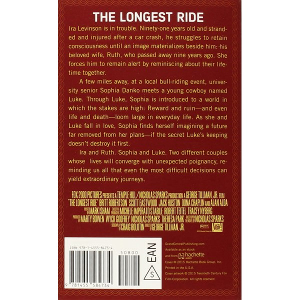 A few miles away, at a local bull-riding event, a Wake Forest College senior's life is about to change. Recovering from a recent break-up, Sophia Danko meets a young cowboy named Luke, who bears little resemblance to the privileged frat boys she has encountered at school. Through Luke, Sophia is introduced to a world in which the stakes of survival and success, ruin and reward -- even life and death - loom large in everyday life. As she and Luke fall in love, Sophia finds herself imagining a future far removed from her plans -- a future that Luke has the power to rewrite . . . if the secret he's keeping doesn't destroy it first.