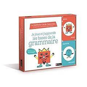 Comprendre et mémoriser les règles de la grammaire en s'amusant. Qu'est-ce qu'un verbe, un nom commun, un adjectif ? Que signifient le singulier et le pluriel ? Un livre et un jeu de cartes qui permettent aux enfants d'apprendre les bases de la grammaire, de façon drôle et imagée. Le livre : A chaque page, l'enfant découvre une " nature " de mot, représentée par un personnage. Le jeu de cartes : il permet de consolider les apprentissages grâce à une règle inspirée du UNO (se défausser de toutes ses cartes en les associant par nature grammaticale ou par couleur).