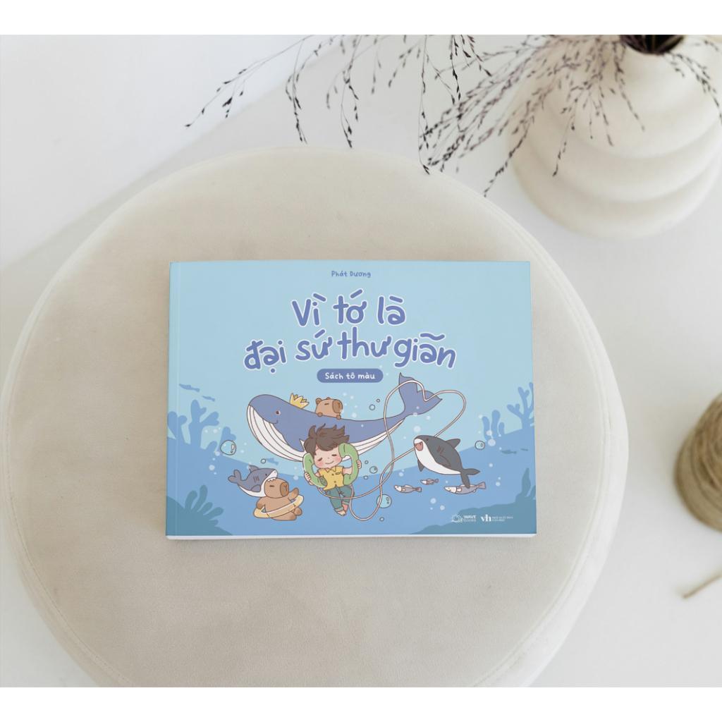 Vì tớ là đại sứ thư giãn là sách tô màu lấy Capybara làm nguồn cảm hứng. Không chỉ gây ấn tượng với ngoại hình ngộ nghĩnh, đáng yêu, Capybara còn khiến người ta cảm thấy thú vị với danh xưng “bộ trưởng bộ ngoại giao” vì có thể kết bạn với nhiều loài động vật khác, cũng như tính cách điềm tĩnh, luôn giữ được vẻ thư thái dù đang sống giữa các loài vật săn mồi nguy hiểm.