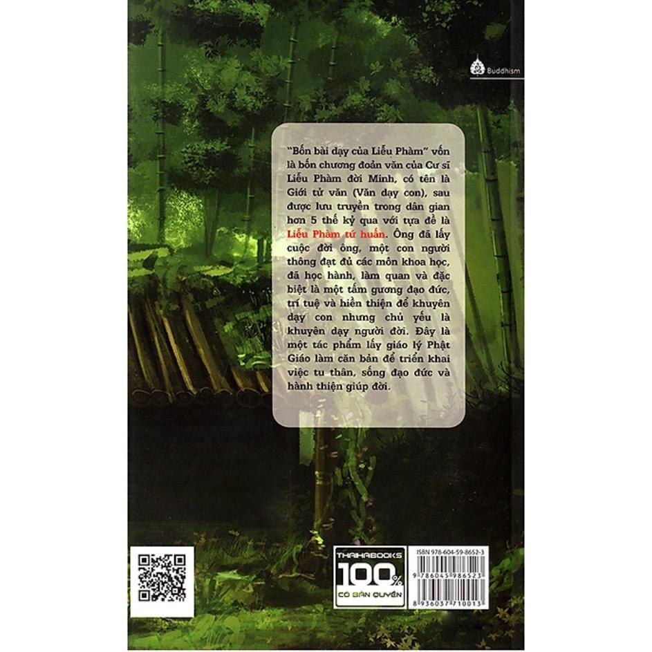 “Bốn bài dạy của Liễu Phàm” vốn là bốn chương đoản văn của Cư sĩ Liễu Phàm đời Minh, có tên là Giới tử văn (văn dạy con ), sau được lưu truyền trong dân gian hơn 5 thế kỷ qua với tựa đề là Liễu Phàm tứ huấn. Ông đã lấy cuộc đời ông, một con người thông đạt đủ các môn khoa học đã học hành, làm quan và đặt biệt là một tấm gương đạo đức, trí tuệ và hiền thiện để khuyên dạy con nhưng chủ yếu là khuyên dạy người đời. Đây là một tác phẩm lấy giáo lý Phật Giáo làm căn bản để triển khai việc tu thân, sống đạo đức và hành thiện giúp đời.