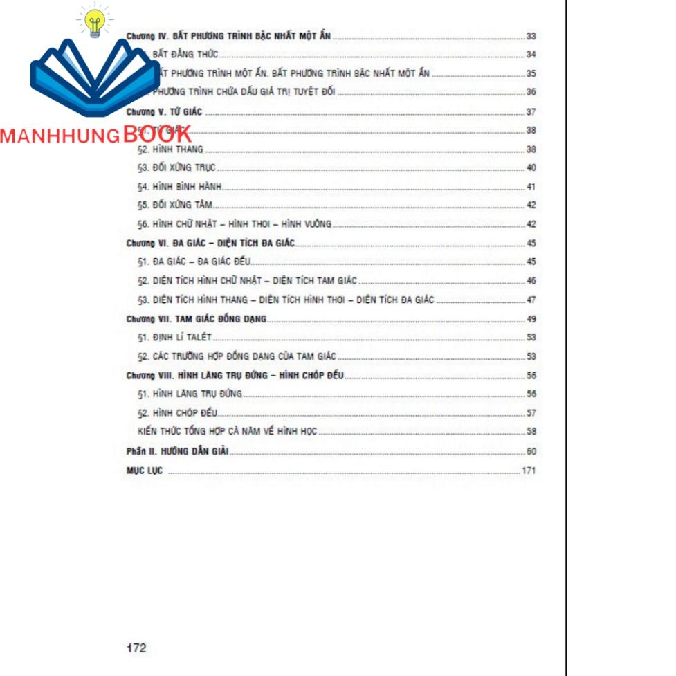 Công ty Học Liệu Sư Phạm giới thiệu: Giới thiệu sách: Nội dung gồm có: Tập 1 Chương I. Số hữu tỉ Chương II. Số thực Chương III. Góc và các đường thẳng song song
