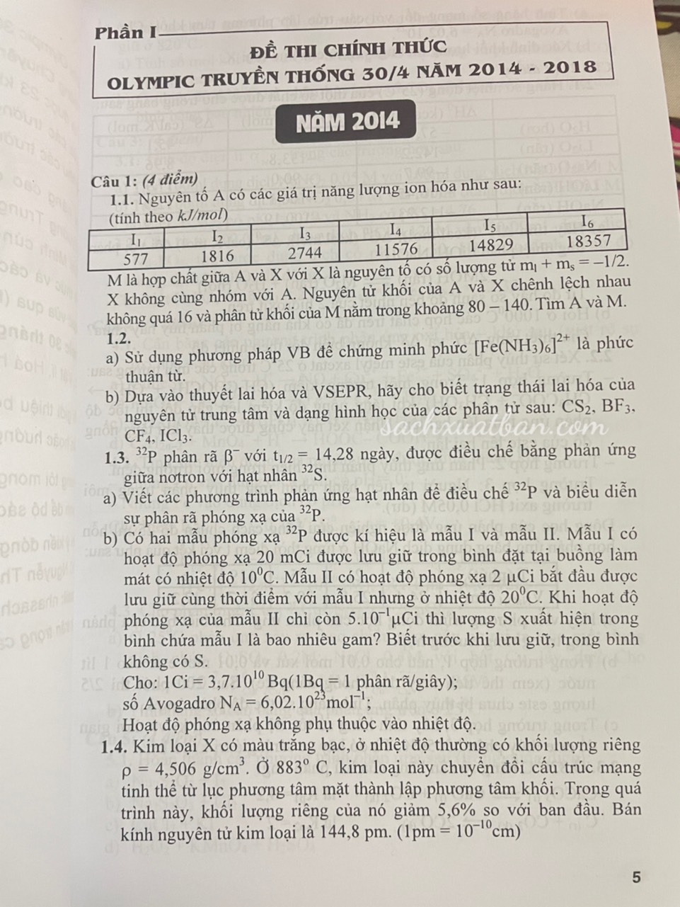 Tổng Tập Đề Thi Olympic 30 Tháng 4 - Hóa Học 10 (Từ Năm 2014 Đến Năm 2018)