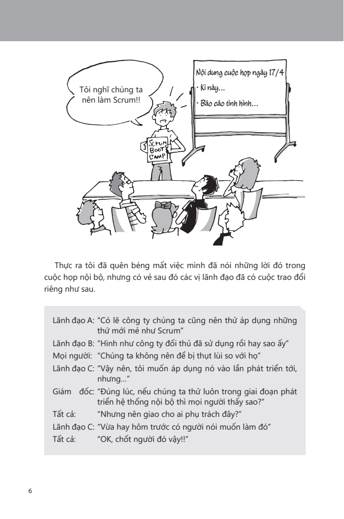 Với cách thức đặt vấn đề dưới dạng truyện tranh (1 – 2 trang đầu tiên trước khi đưa các cảnh báo), tác giả sẽ giúp cho người đọc dễ dàng hình dung ra các vấn đề mà họ có thể gặp phải khi áp dụng Scrum một cách gần gũi hơn, dí dỏm hơn.