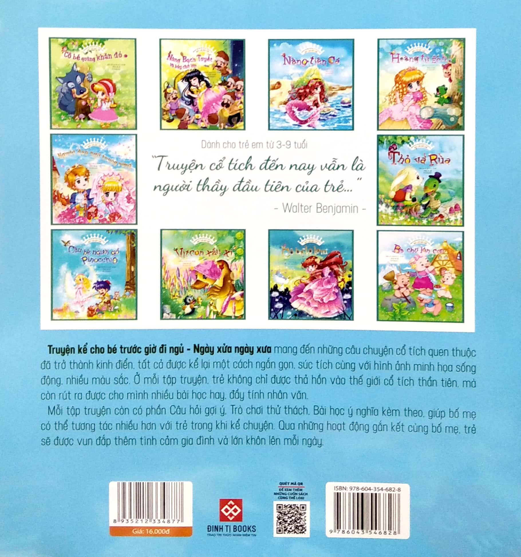 Mua tại TiktokTruyện kể cho bé trước giờ đi ngủ - Ngày xửa ngày xưa mang đến những câu chuyện cổ tích quen thuộc đã trở thành kinh điển, tất cả được kể lại một cách ngắn gọn, súc tích cùng với hình ảnh minh họa sống động, nhiều màu sắc. Ở mỗi tập truyện, trẻ không chỉ được thả hồn vào thế giới cổ tích thần tiên, mà còn rút ra được cho mình nhiều bài học hay, đầy tính nhân văn. Mỗi tập truyện còn có phần Câu hỏi gợi ý, Trò chơi thử thách, Bài học ý nghĩa kèm theo, giúp bố mẹ có thể tương tác nhiều hơn với trẻ trong khi kể chuyện. Qua những hoạt động gắn kết cùng bố mẹ, trẻ sẽ được vun đắp thêm tình cảm gia đình và lớn khôn lên mỗi ngày.