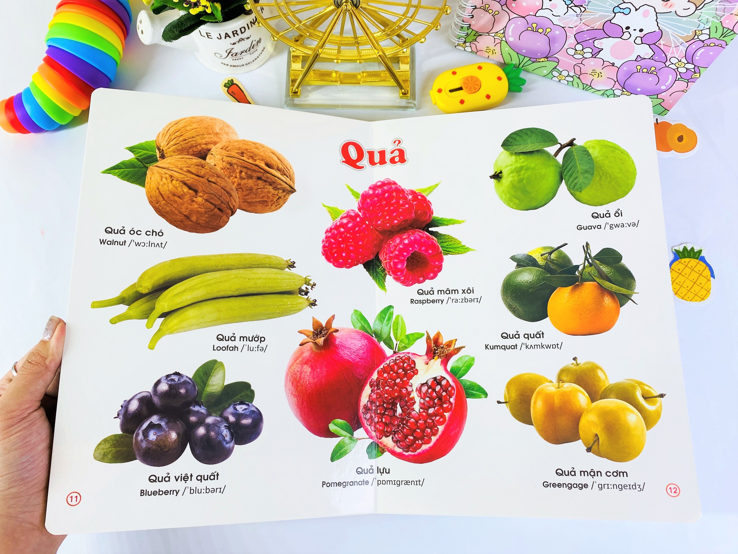 Sách Thư Viện Hình Ảnh Song Ngữ Đầu tiên Của Bé Về Hoa - Rau củ - Quả - loài chim - thế giới khủng long - Chữ cái và số đếm với nhiều hình
