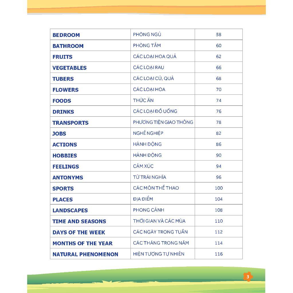 Cuốn sách gồm trên 35 chủ để thưởng gặp như gia đình, nghề nghiệp, màu sắc, hình khối... Với hơn 2000 từ vựng tiếng Anh thông dụng được trình bày theo dạng sơ đồ tư duy cùng hình ảnh vô cùng sinh động, đáng yêu.