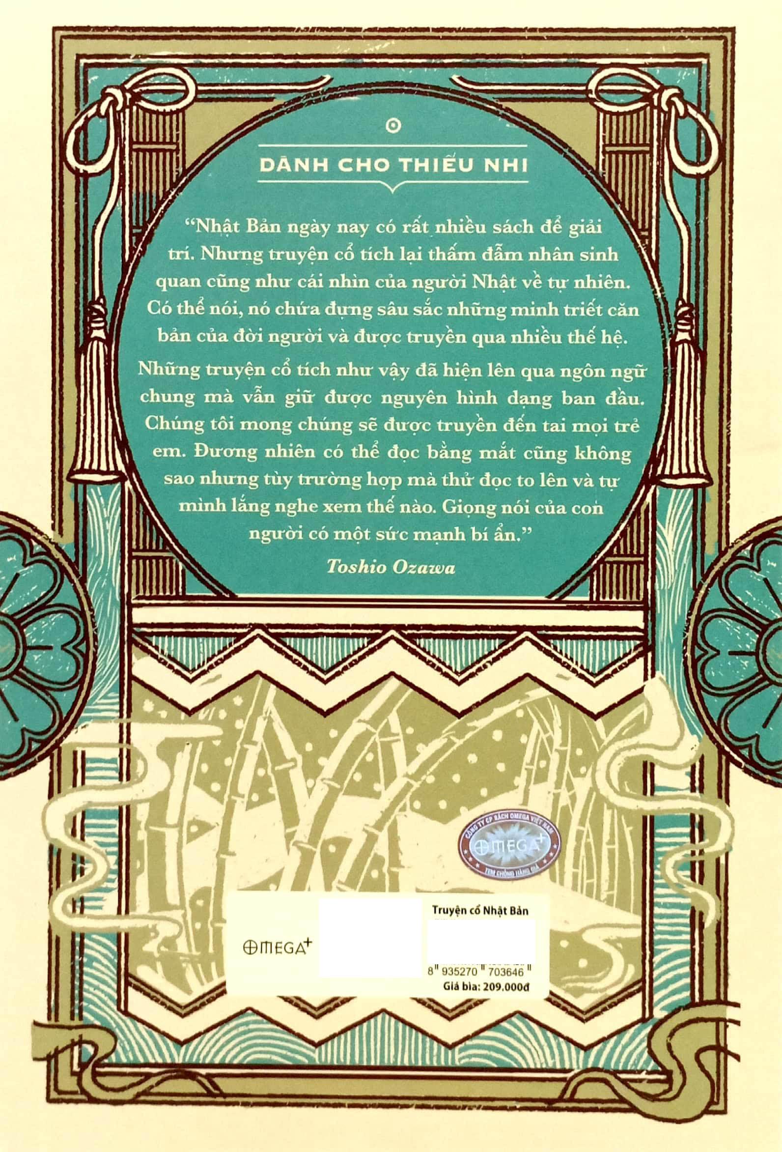 Nhật Bản ngày nay có rất nhiều sách để giải trí. Nhưng truyện cổ tích lại thấm đẫm nhân sinh quan cũng như cái nhìn của trẻ em, và thấm đẫm cái nhìn của người Nhật về tự nhiên vì họ gắn bó mật thiết với tự nhiên. Có thể nói nó chứa đựng sâu sắc những trí tuệ căn bản của đời người và được truyền qua nhiều thế hệ. Và những truyện cổ tích như vậy đã hiện lên qua ngôn ngữ chung mà vẫn giữ nguyên hình dạng ban đầu. Tôi mong chúng sẽ được truyền đến tai mọi trẻ em. Đương nhiên, có thể đọc bằng mắt cũng không sao nhưng tùy trường hợp mà thử đọc to lên và tự m.ình lắng nghe xem sao. Giọng nói của con người có một sức mạnh bí ẩn. Không phải là thiện hay ác mà là giọng nói ảnh hưởng trực tiếp đến trái tim con người qua đôi tai. Thời nay, văn hóa nhìn bằng mắt tràn ngập cuộc sống nhưng truyện cổ tích vốn là văn hóa nghe bằng tai nên tôi mong các em thưởng thức truyện cổ bằng tai. Chắc chắn các em sẽ hình dung ra nhiều cảnh tượng và cảm nhận được nhiều cách tiến lên trong cuộc đời.
