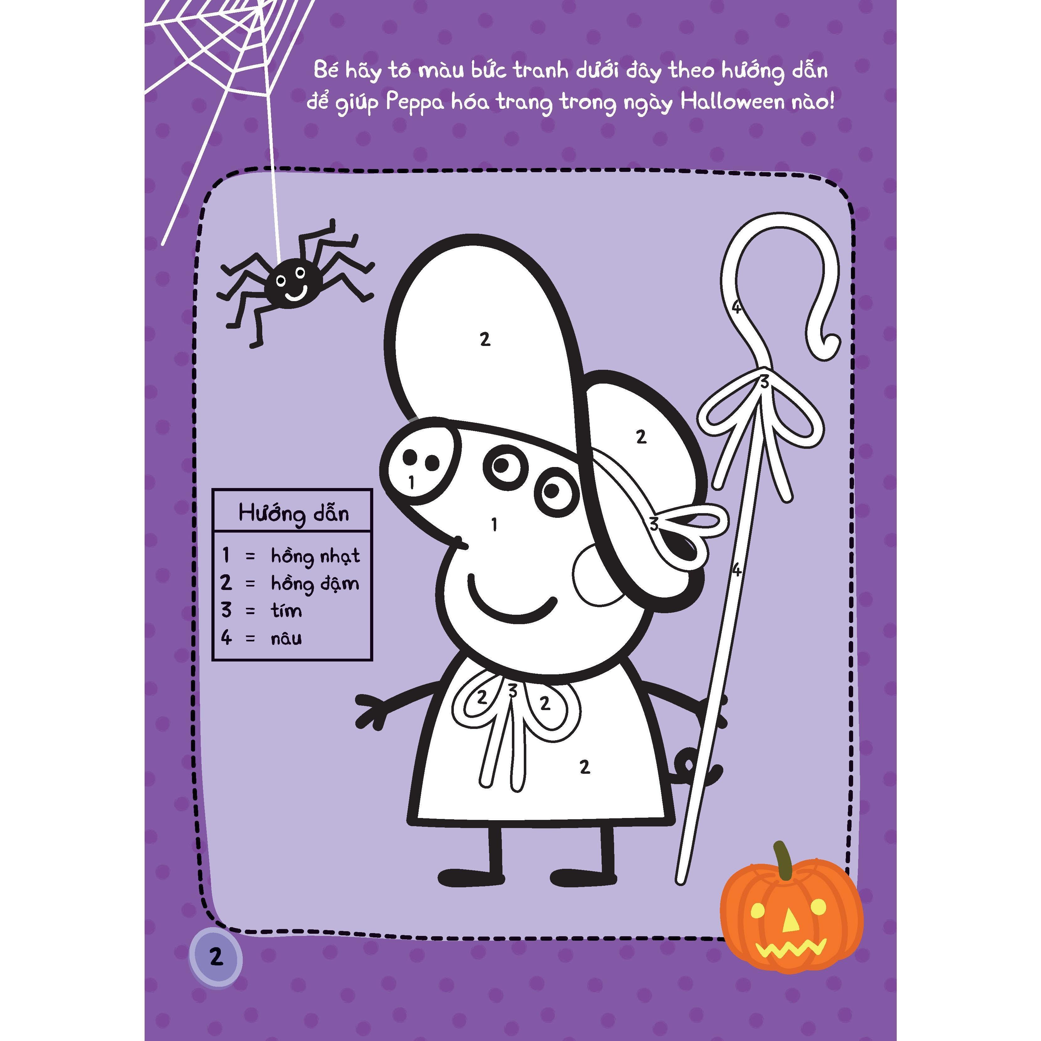Halloween đã đến rồi. Bé hãy cùng Peppa, George tô màu, tham gia các hoạt động, dán sticker trang trí để chào mừng ngày lễ này nhé! Bé đừng quên gửi tặng người thân, bạn bè những tấm thiệp Halloween ấn tượng đấy.