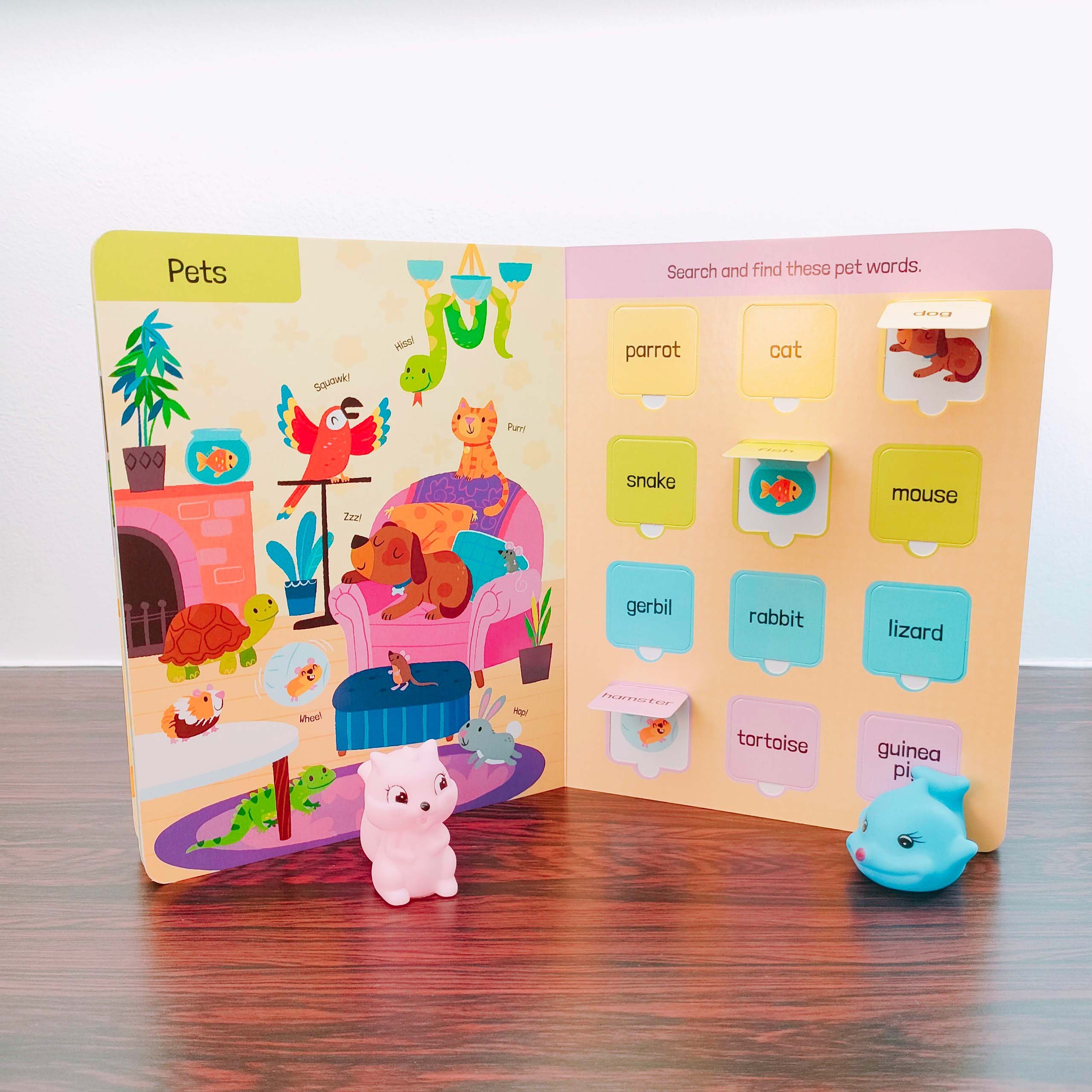 With 100 flaps to lift, pictures to find, and simple first words to learn, toddlers will build their vocabulary with confidence. The 100 child-friendly card lift-the-flaps are perfect for little hands to lift and look underneath, before finding the matching pictures on the scene opposite. Words printed on top of the flaps help to reinforce word and picture association making learning fun!