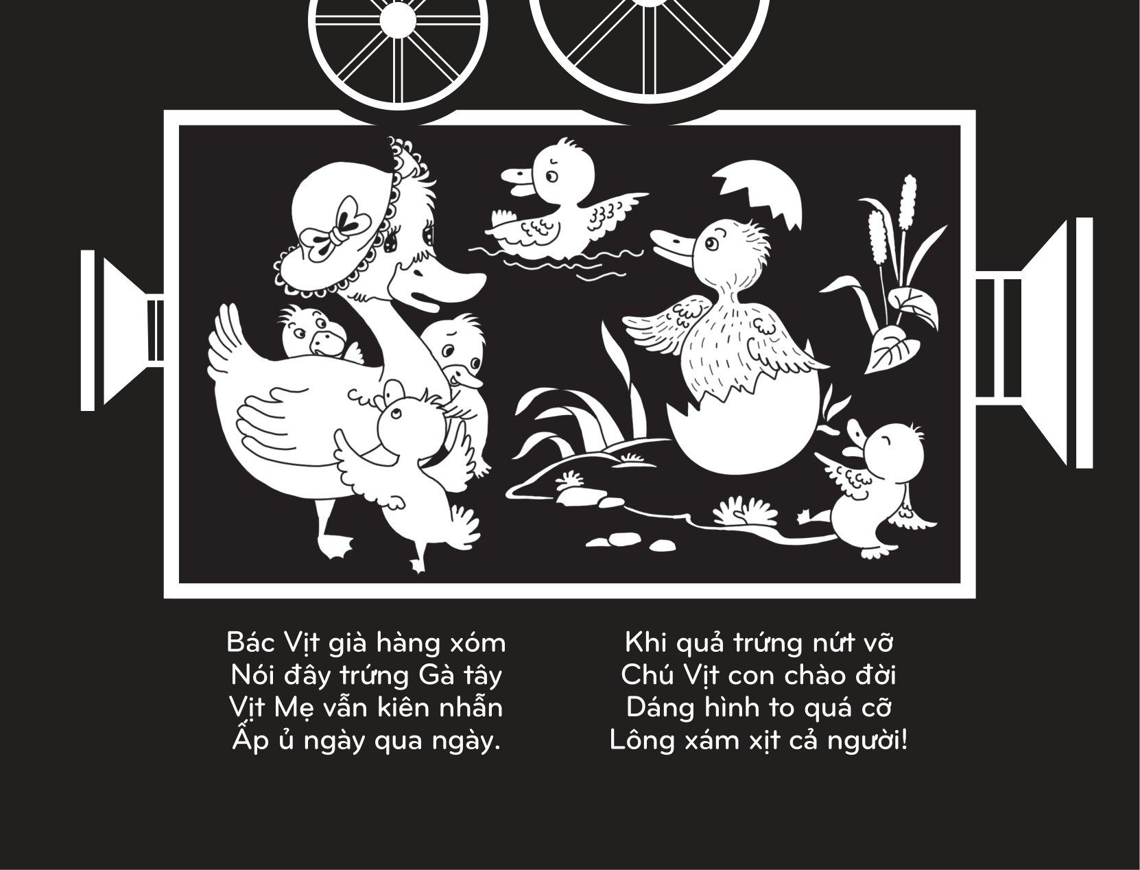 Sách chiếu bóng - Cinema book - Rạp chiếu phim trong nhà là một phiên bản vô cùng đặc biệt có thể đọc được trong bóng tối. Với mục tiêu đem tới các sản phẩm do người Việt viết cho trẻ em Việt, câu chuyện Vịt con xấu xí vốn rất đỗi quen thuộc sẽ được tái hiện lại theo một phương pháp hoàn toàn mới. Qua những vần thơ là những "thước phim" sống động trong sách, cả một thế giới diệu kỳ sẽ mở ra trước mắt em đấy!
