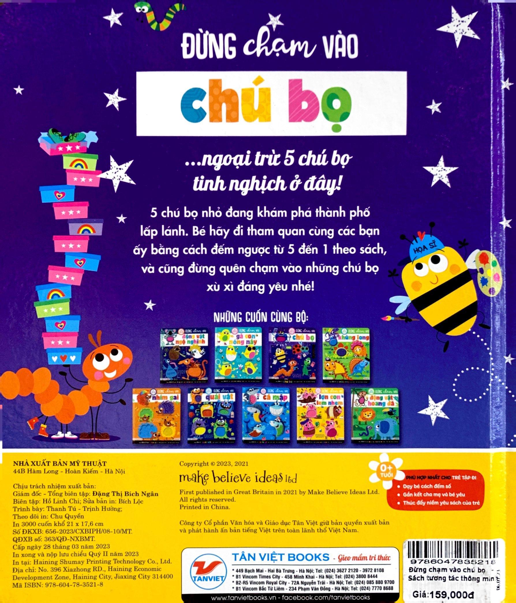 Sách Tương Tác Thông Minh - Đừng Chạm Vào Chú Bọ Những năm tháng đầu đời là khoảng thời gian lí tưởng để khuyến khích phát triển các giác quan cho bé, đặc biệt là xúc giác khi bé đã bắt đầu ...