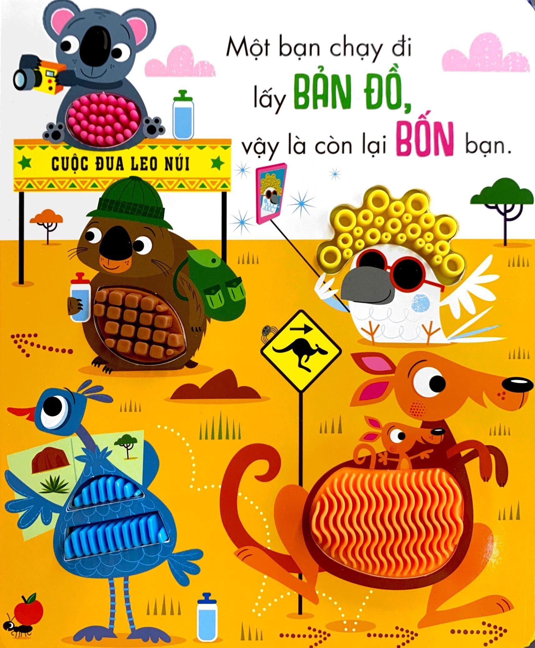 Bên cạnh đó, cha mẹ có thể vui chơi và tương tác cùng các bé qua những câu chuyện trong sách, dạy bé cách đếm số và nhận biết các loài động vật.