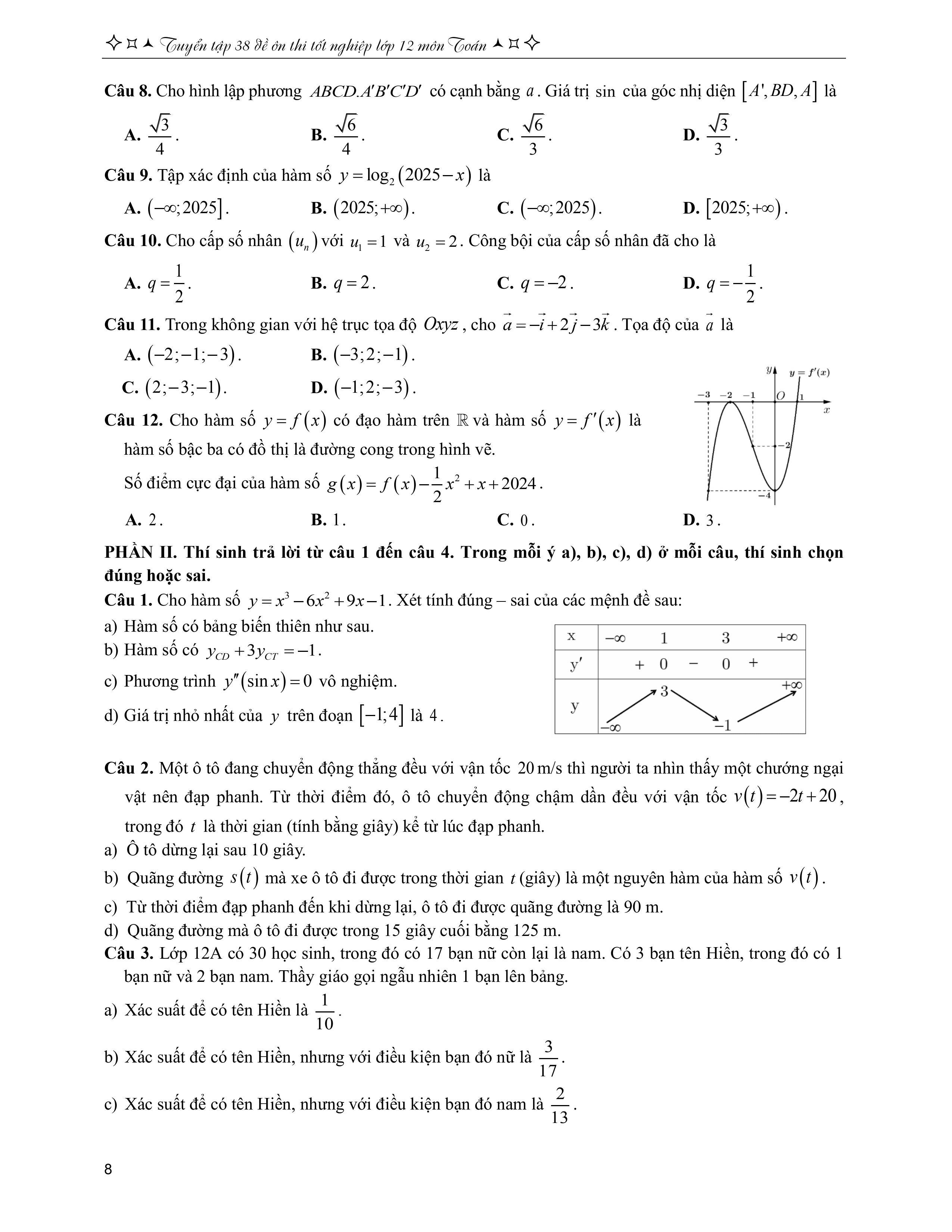 Nhằm tạo điều kiện cho Học sinh có nguồn tài liệu ôn tập cũng như Giáo viên có nguồn tài liệu tham khảo. Chúng tôi biên soạn cuốn sách TUYỂN TẬP 38 ĐỀ ÔN THI TỐT NGHIỆP LỚP 12 MÔN TOÁN. Cấu trúc cuốn sách gồm 38 đề ôn và sau đó là đáp án và lời giải 38 đề. Mỗi đề gồm có 3 phần theo đúng cấu trúc mới của BGD: