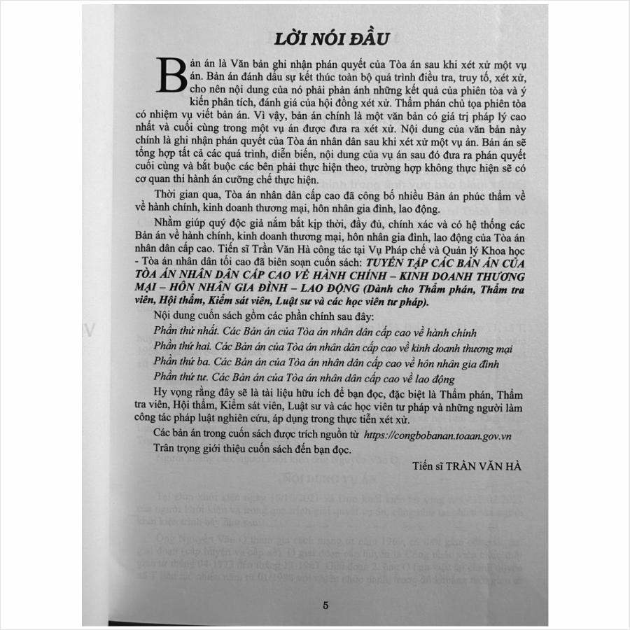 ✨Sách Tuyển Tập Các Bản Án Của Tòa Án Nhân Cấp Cao Về Hành Chính - Kinh Doanh Thương Mại - Hôn Nhân Gia Đình - Lao Động (Dành cho Thẩm phán, Thẩm tra viên, Hội thẩm, Kiểm sát viên, Luật sư và các học viên tư pháp ) - TS. Trần Văn Hà (V2446A)