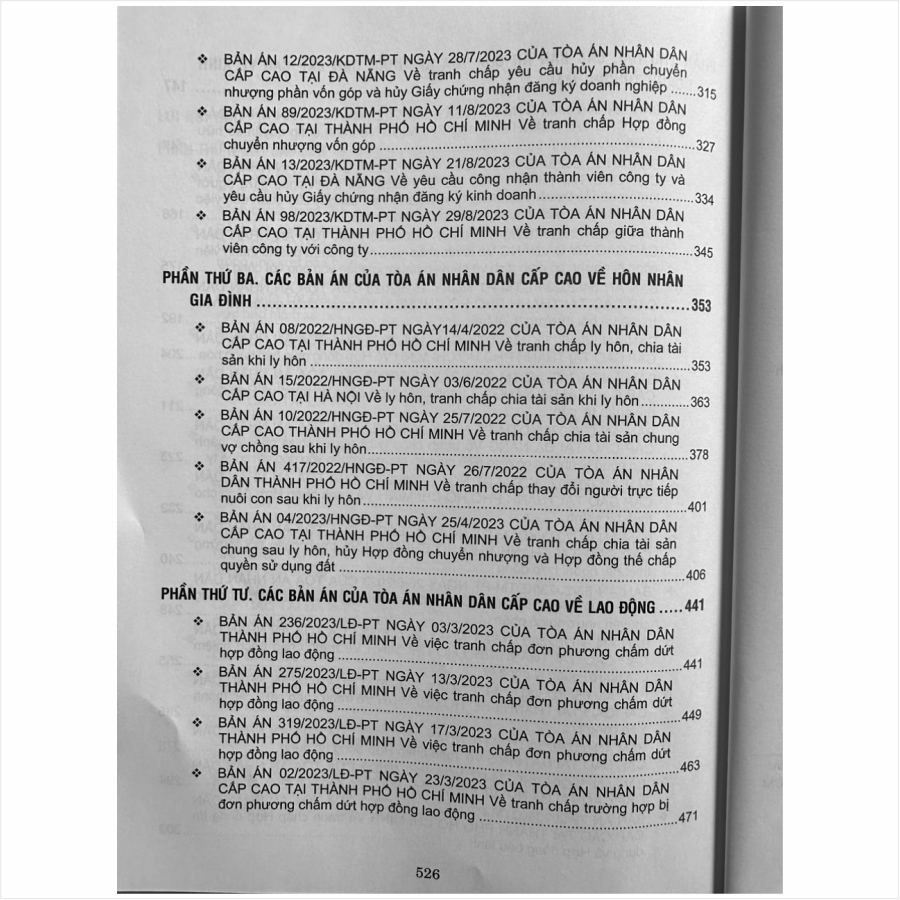 Tuyển tập các bản án của TAND cấp cao về hành chính, kinh doanh thương mại, hôn nhân gia đình...