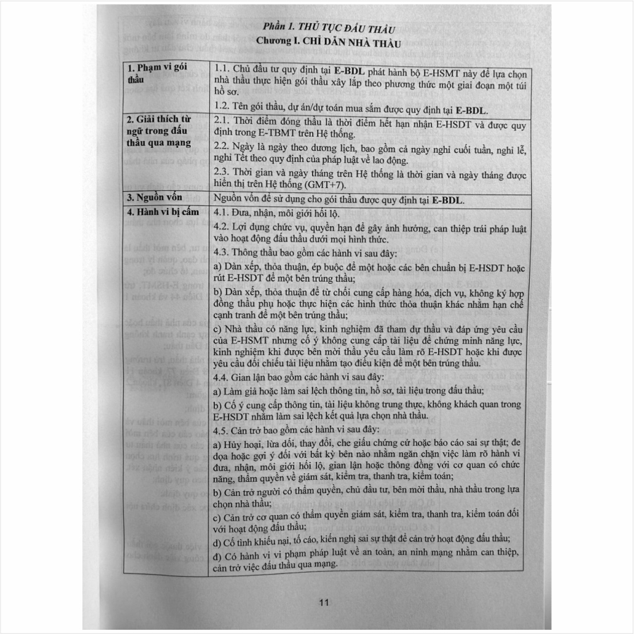 Phần thứ nhất: Mẫu hồ sơ mời thầu xây lắp qua mạng.