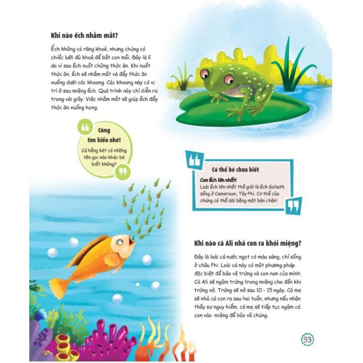 - 6 chương của cuốn sách sẽ mở ra những điều thú vị và trả lười những thắc mắc của con về: Cơ thể người, hệ mặt trời, công nghệ, khoa học, động vật, tự nhiên.