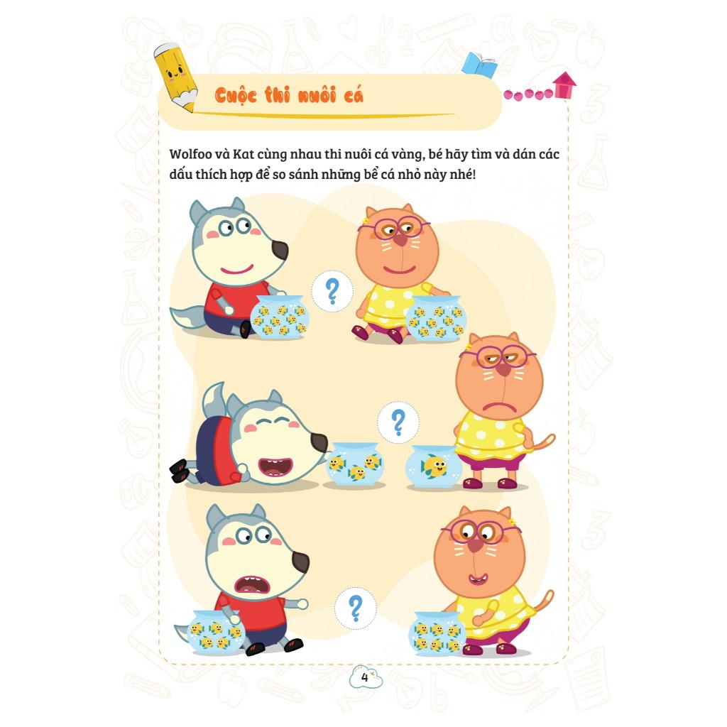 Cuốn sách thuộc trong bộ sách “Wolfoo khám phá toán học vui” gồm 4 cuốn dành trẻ từ 3 đến 6 tuổi. Được thiết kế theo hướng giúp trẻ trải nghiệm, làm quen với những kiến thức toán học cơ bản như: số đếm, phép tính, so sánh và phân biệt các đối tượng, nhận biết hình học cơ bản…