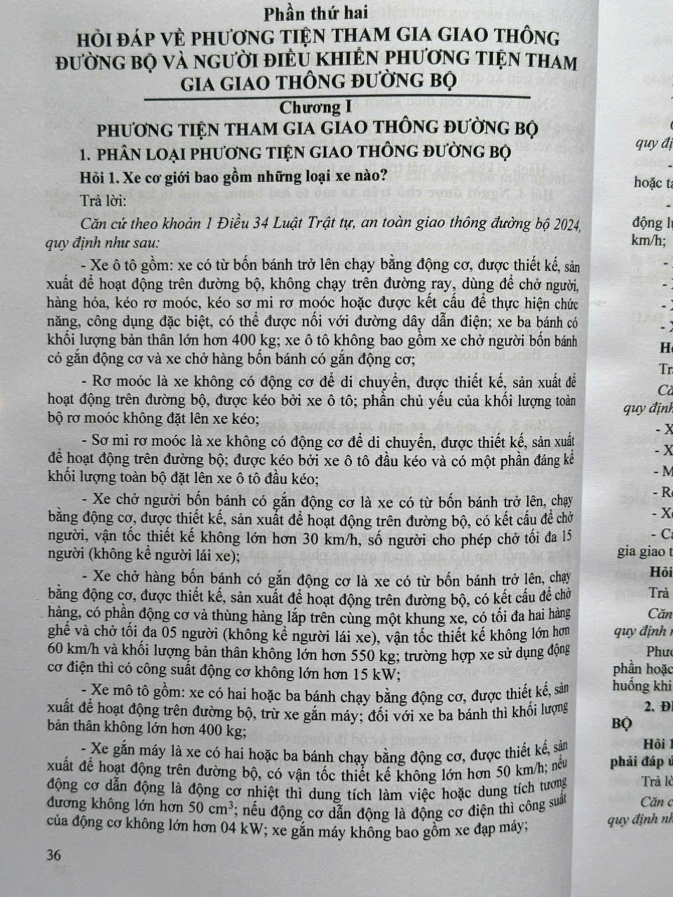 Phần thứ hai. HỎI ĐÁP VỀ PHƯƠNG TIỆN THAM GIA GIAO THÔNG ĐƯỜNG BỘ VÀ NGƯỜI ĐIỀU KHIẾN PHƯƠNG TIỆN THAM GIA GIAO THÔNG ĐƯỜNG BỘ