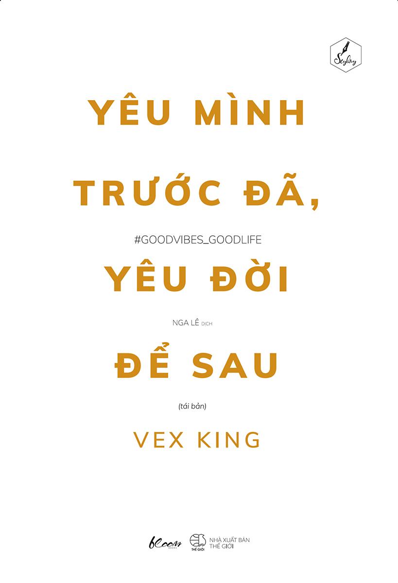 Yêu m.ình trước đã, yêu đời để sau được viết bởi Vex King - một nhà văn, một huấn luyện viên tinh thần và một doanh nhân – người đã trải qua vô vàn thử thách trong quá trình trưởng thành. Anh từng sống dưới đáy của cuộc đời khi cha anh qua đời từ khi anh còn là một đứa trẻ, từng trải qua thời gian sống vô gia cư và lớn lên trong một khu phố nhiều tệ nạn. Anh cũng thường xuyên bị bắt nạt do nạn phân biệt c.hủng tộc. Tuy nhiên, Vex vẫn vươn lên mạnh mẽ và thành công trong cuộc sống. Tài khoản ram cá nhân của anh (@vexking) đã trở thành nguồn cảm hứng của hàng ngàn người trẻ. Anh là người bắt đầu phong trào Good Vibes Only #GVO để giúp người khác sử dụng sức mạnh của sự tích cực để biến đổi bản thân và cuộc sống của họ thành một điều gì đó vĩ đại hơn.