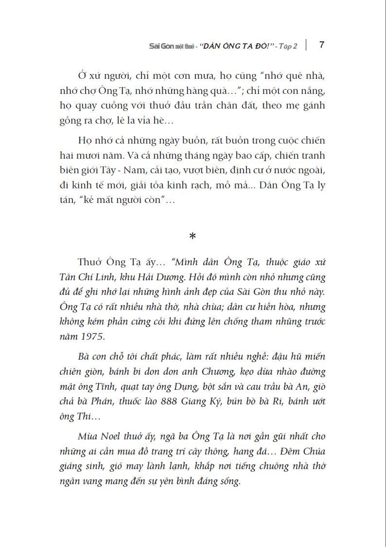 Những ai đã từng yêu mến vùng Ông Tạ qua miêu tả của tác giả Cù Mai Công hẳn sẽ rất vui khi trong quyển sách Sài Gòn một thuở: “Dân Ông Tạ đó!”- Tập 2, tác giả sẽ tiếp tục dẫn bạn đọc đi sâu vào từng ngõ hẻm, thăm từng căn nhà, gặp gỡ những nhân vật đã làm nên một trời tuổi thơ đầy kỷ niệm của anh cũng như của nhiều cư dân Ông Tạ khác.