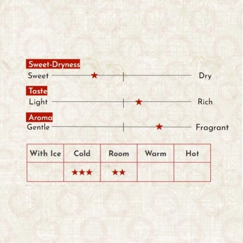 Xuất xứ: Nhật Bản Nồng độ cồn: 15% Thành phần: Lên men từ nước, gạo (nội địa Nhật), men gạo Koji (nội địa Nhật) Hướng dẫn sử dụng: Có thể uống tại nhiệt độ phòng 15 - 20 độ.