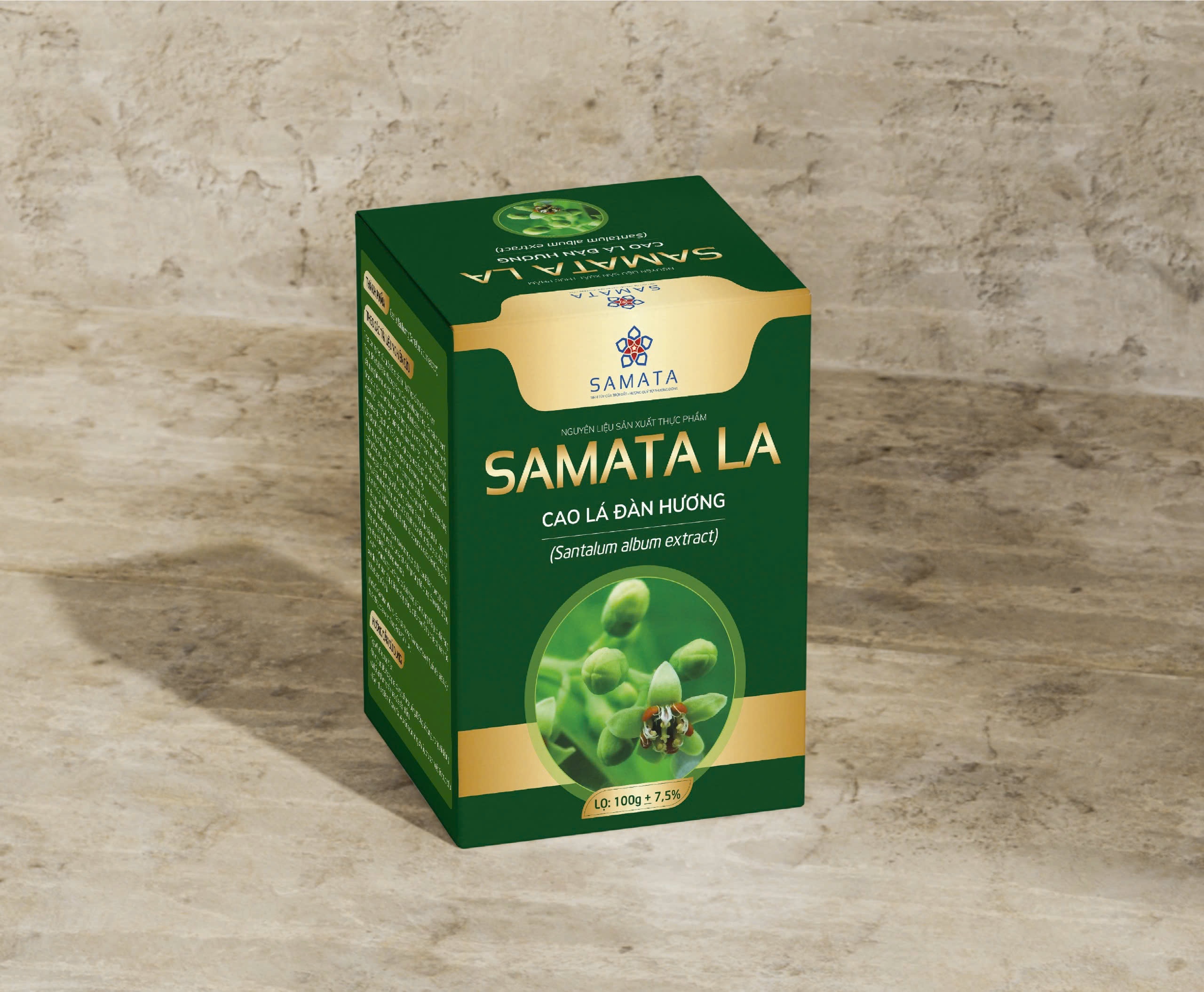 - Tên sản phẩm SAMATA – Cao Lá Đàn Hương (Santalum album extract) - Thành Phần Chính: Lá đàn hương: Chiết xuất từ lá cây đàn hương trắng (Santalum album), giàu dưỡng chất có lợi