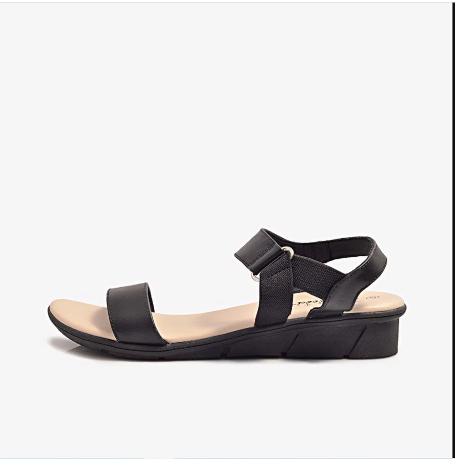 HE 37 Mô tả sản phẩm sandal nữ màu đen 1. Thiết kế tổng thể - Dáng sandal hở mũi, quai ngang kết hợp quai hậu. - Gam màu đen trơn, sang trọng và dễ