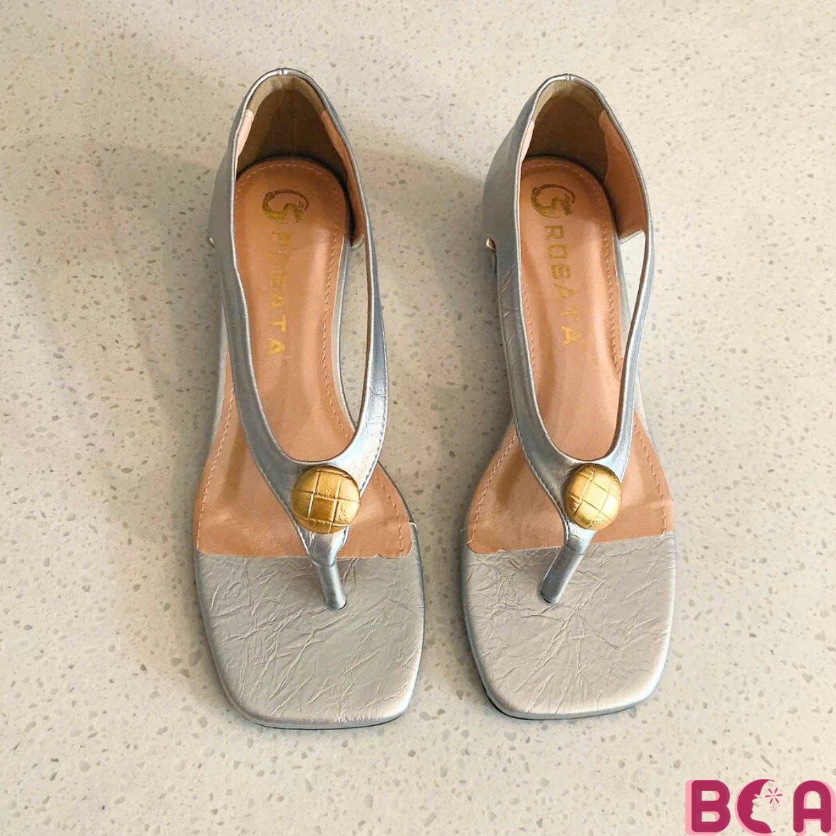 Thiết kế mũi vuông thời thượng cùng quai kẹp ngón đính khuy vàng nổi bật, RO727 mang lại cảm giác vừa êm ái – vừa tôn dáng.