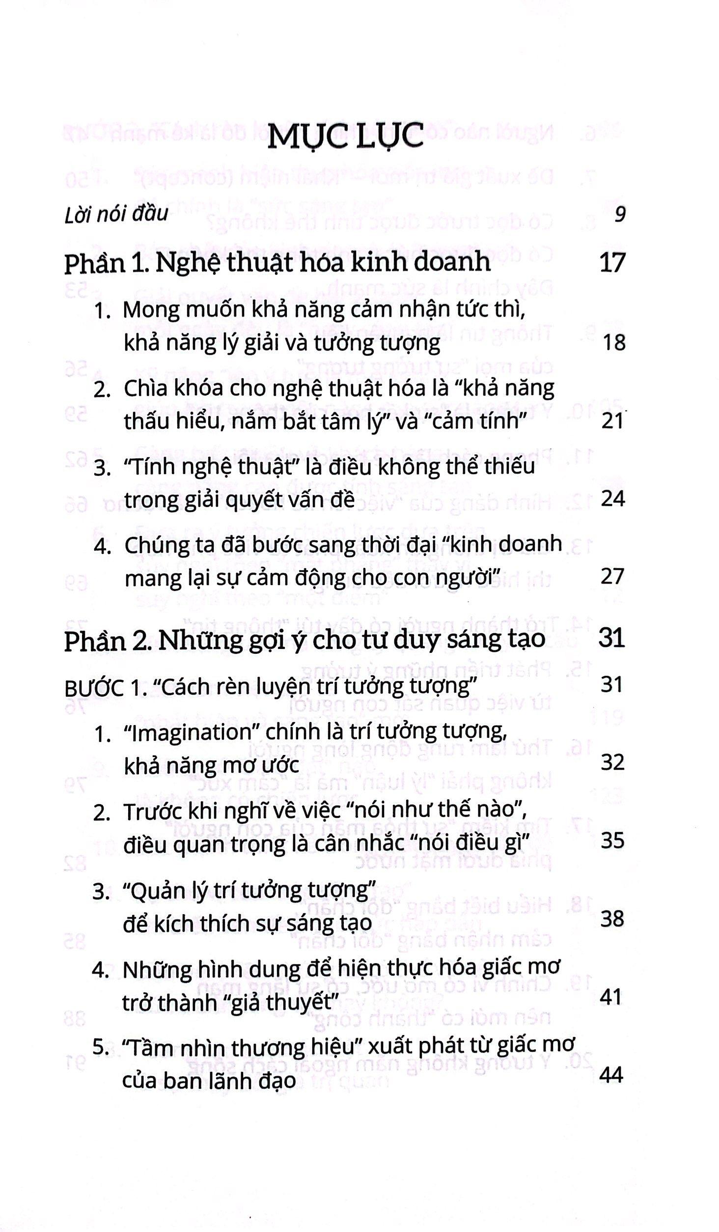 - Chúng ta đã bước sang thời đại “kinh doanh mang lại sự cảm động cho con người” Phần 2. Những gợi ý cho tư duy sáng tạo Bước 1. “Cách rèn luyện trí tưởng tượng”