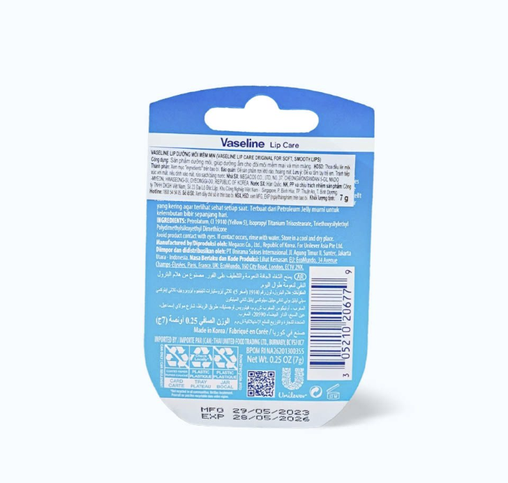 Thành phần Petrolatum, Fragrance, CI 73360, Linalool, CI 19140 (Yellow 5), Isopropyl Titanium Triisostearate, Triethoxysilylethyl Polydimethylsiloxyethyl Dimethicone Công dụng Sản phẩm dưỡng môi, giúp dưỡng ẩm cho đôi môi mềm mại, mịn màng cùng với