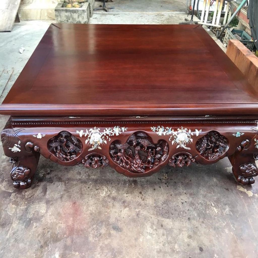 Sập chân quỳ khảm trai điểm ốc 1m80x2m20 gỗ gụ Nam Phi 35tr